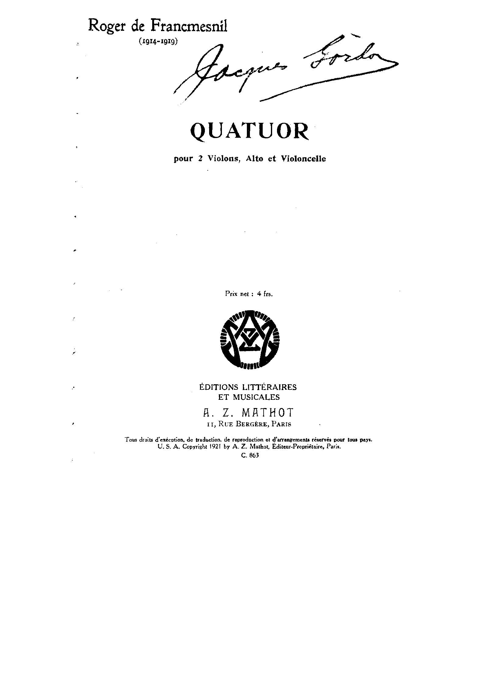 | Composer | Francmesnil, Roger de |