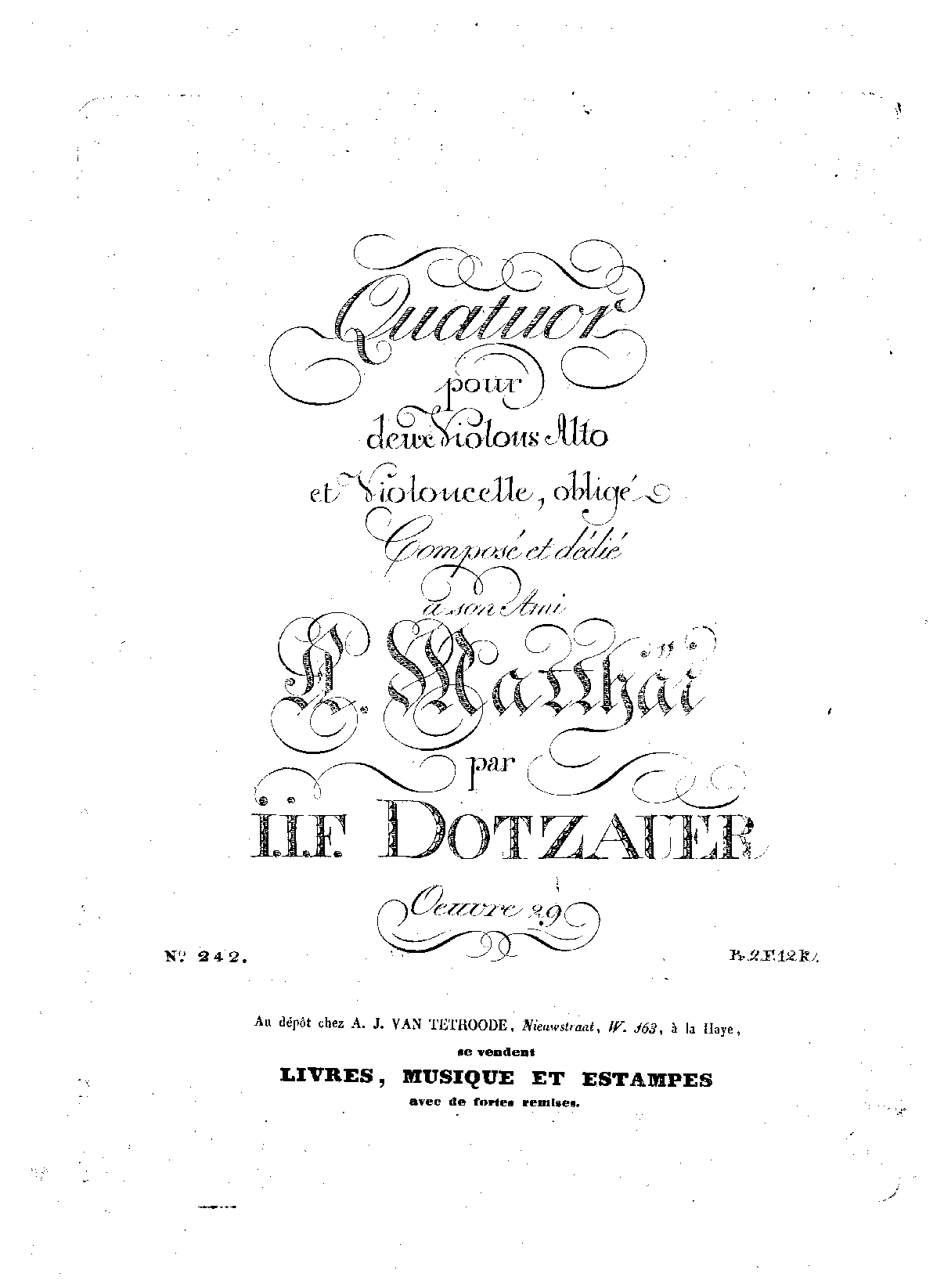| Genre Categories | Quartets; For 2 violins, viola, cello; Scores featuring the violin; |