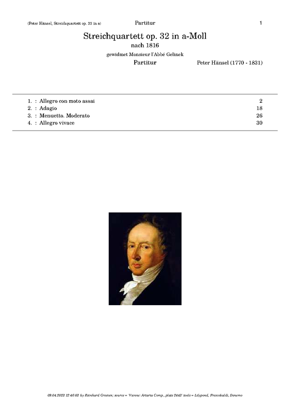 | Genre Categories | Quartets; For 2 violins, viola, cello; Scores featuring the violin; |