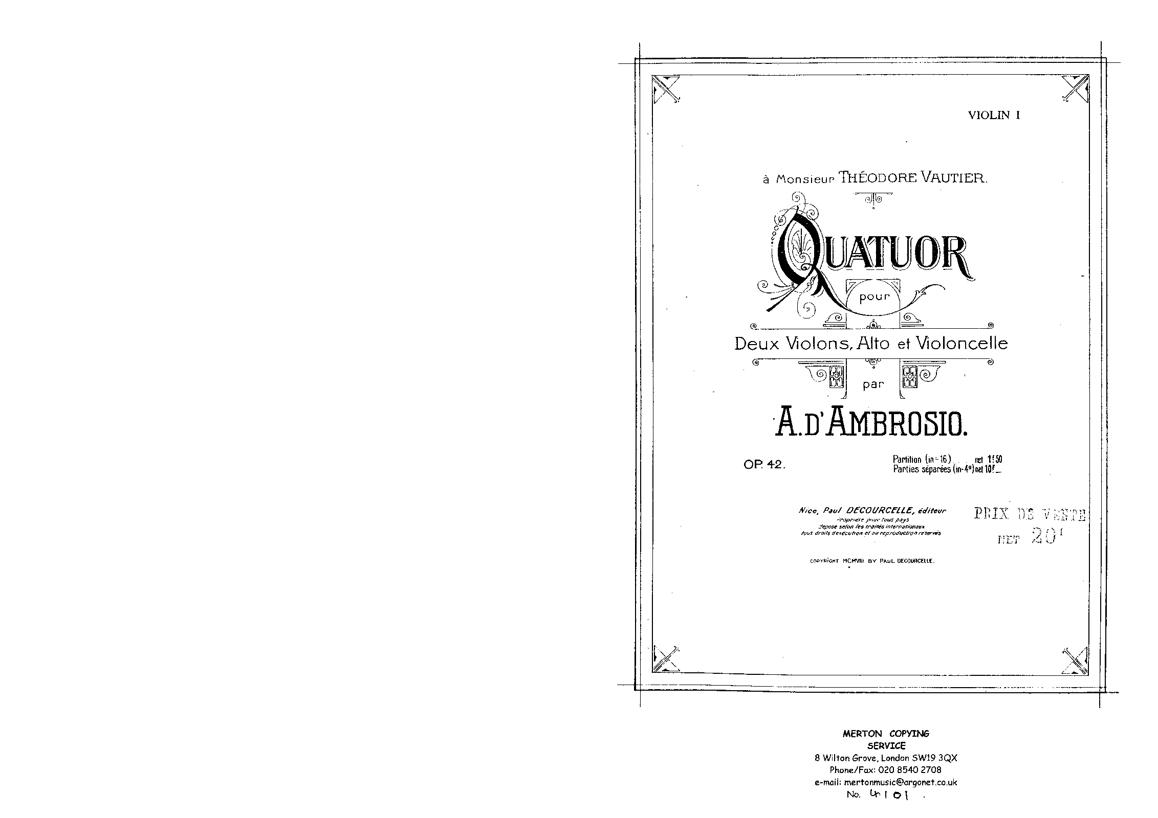 | Genre Categories | Quartets; For 2 violins, viola, cello; Scores featuring the violin; |