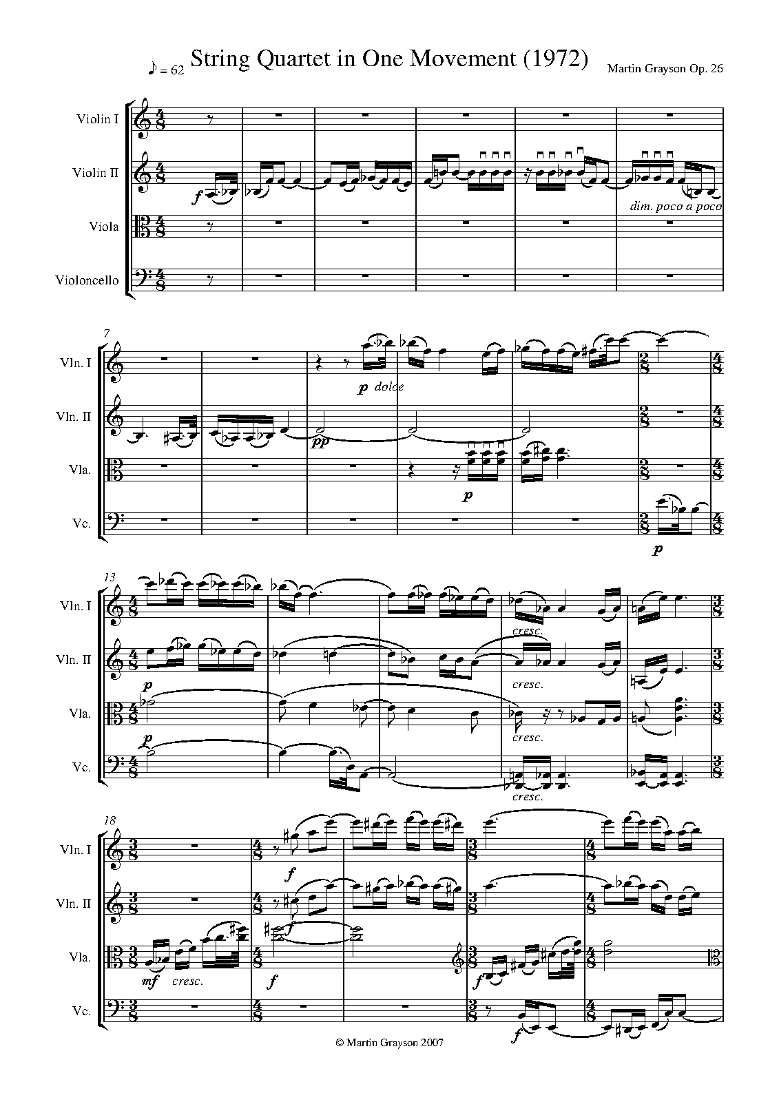 | Genre Categories | Quartets; For 2 violins, viola, cello; Scores featuring the violin; |