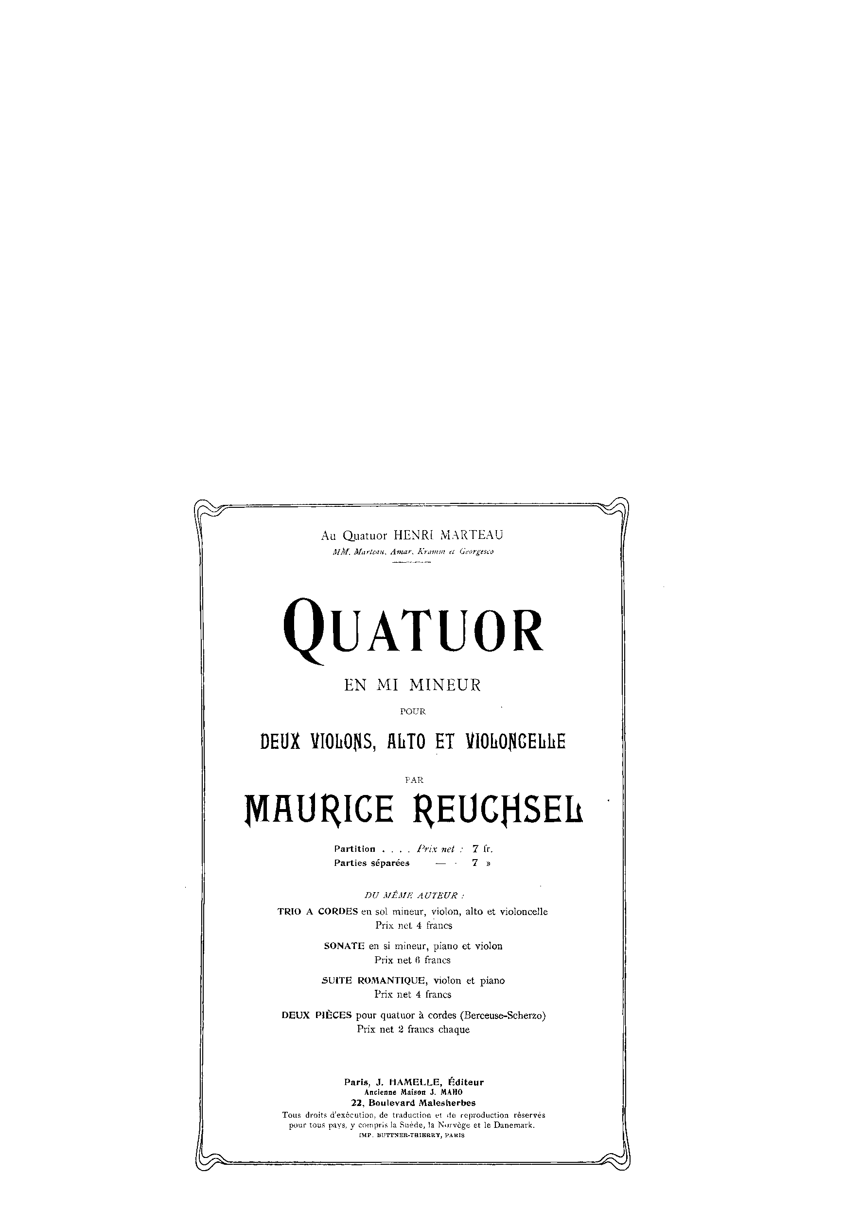 Quartet is mentioned in Searchinger’s International Who's who in Music and Musical Gazetteer, Reuchsel entry on page 520 (1918).