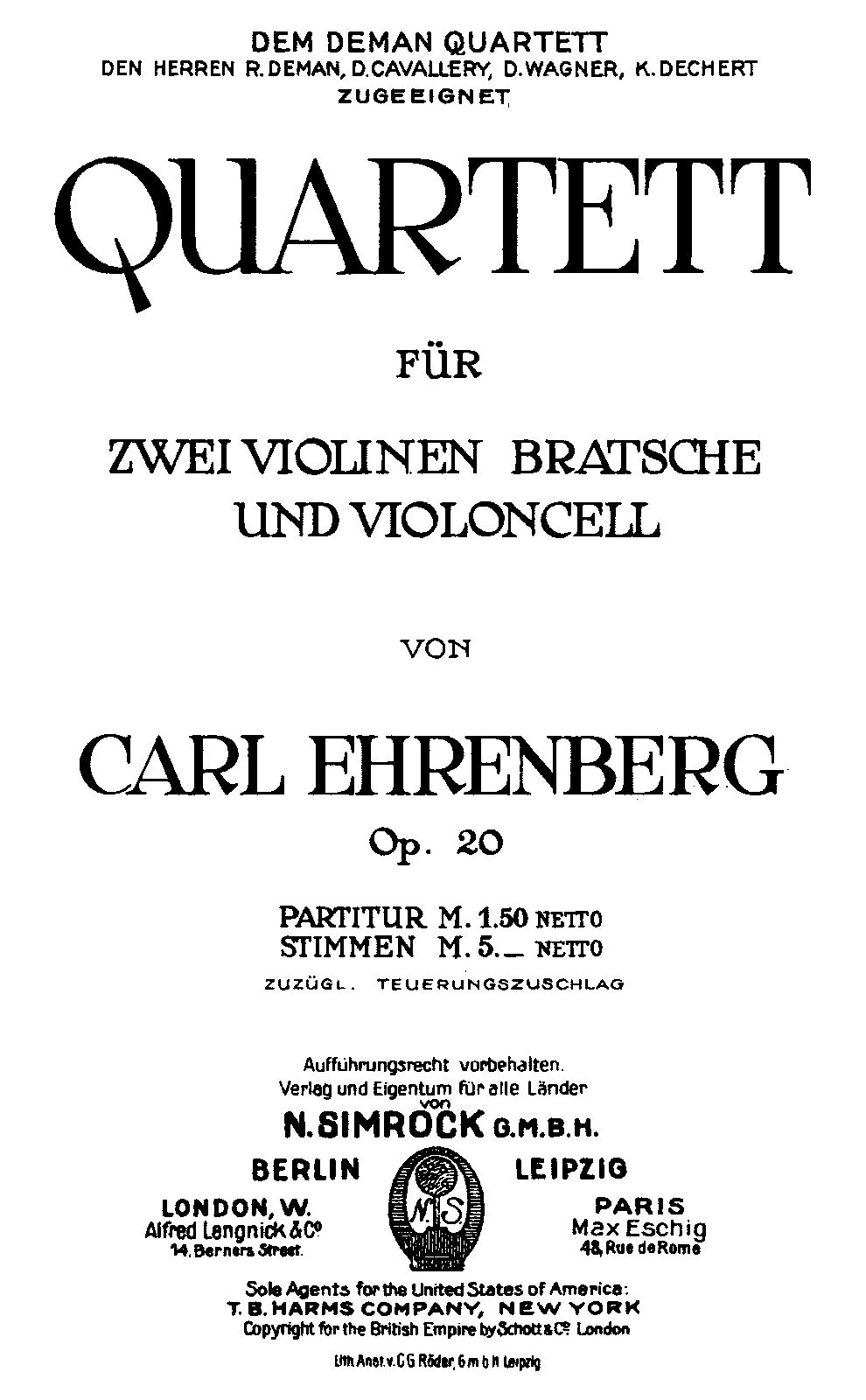 | Dedication | Dem Deman Quartett Den Herrn R. Deman, D. Cavallery, D. Wagner, K. Dechert |