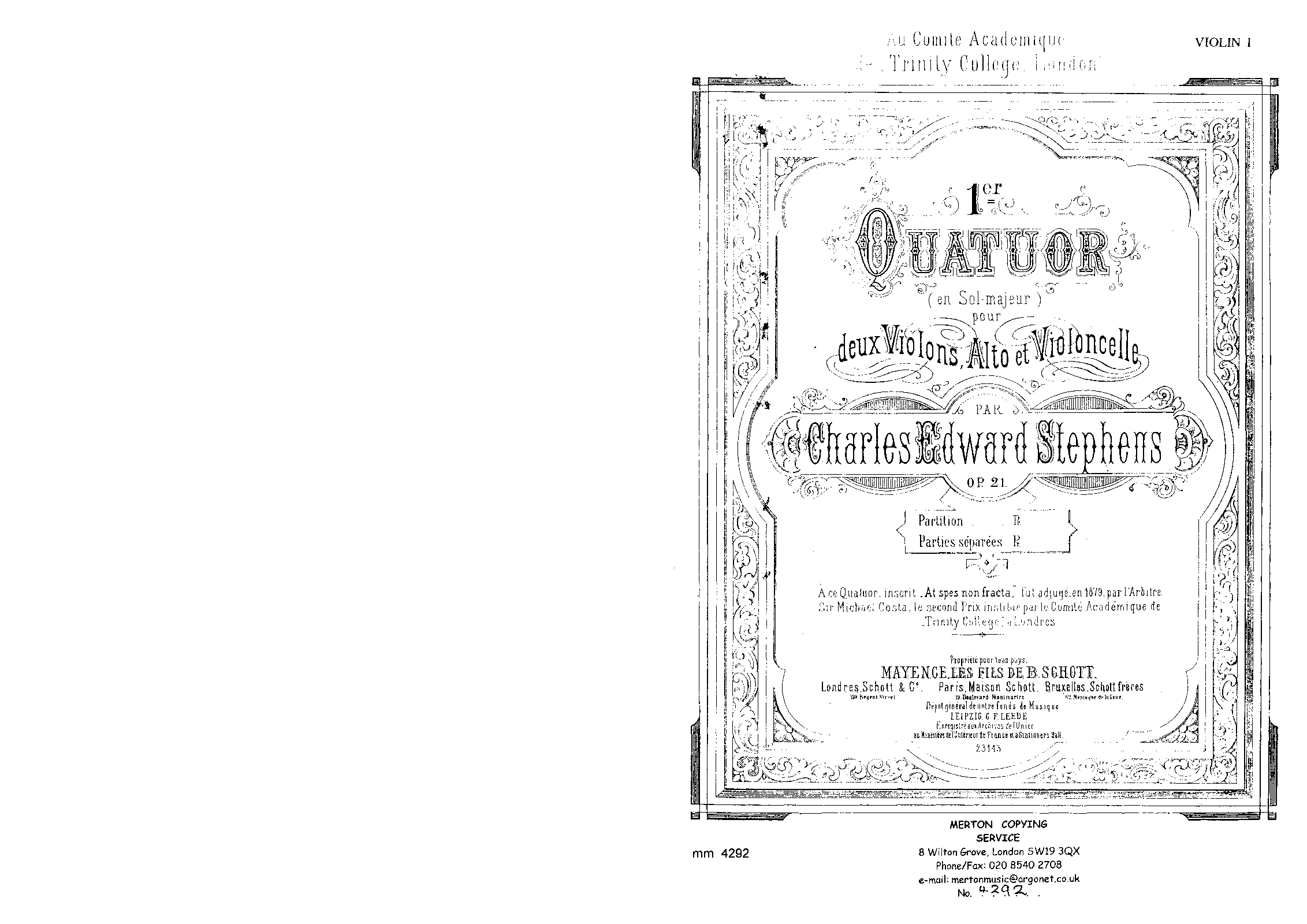 | Dedication | au Comité academique de Trinity College, London |