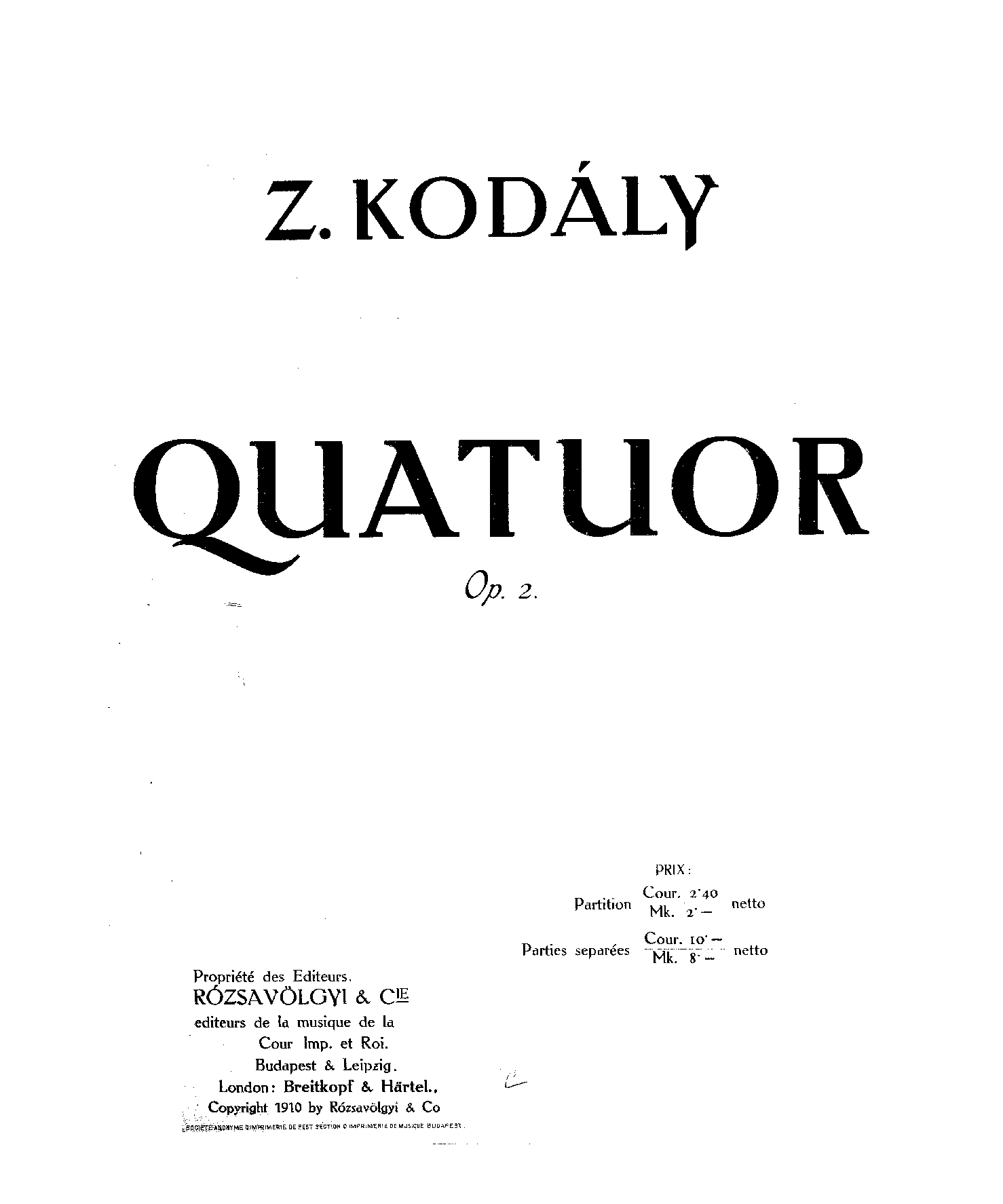 | First Publication. | 1910 – Budapest: Rózsavölgyi & Co. |
