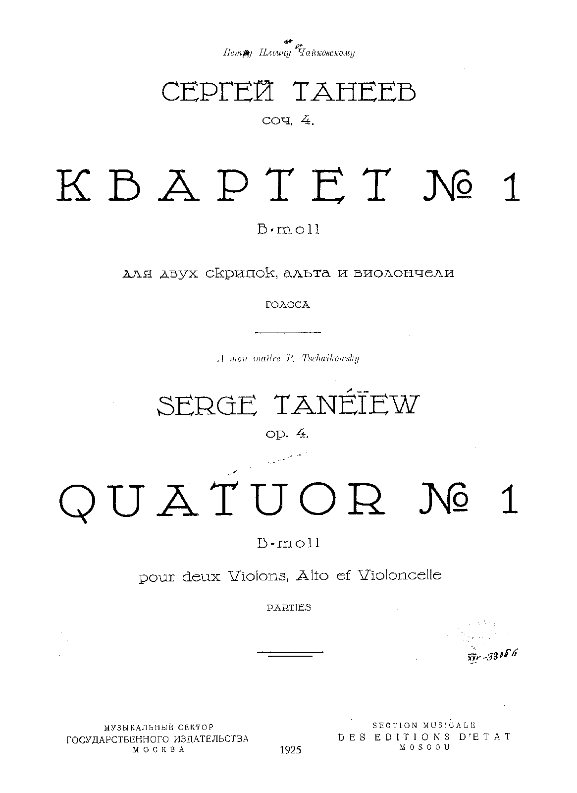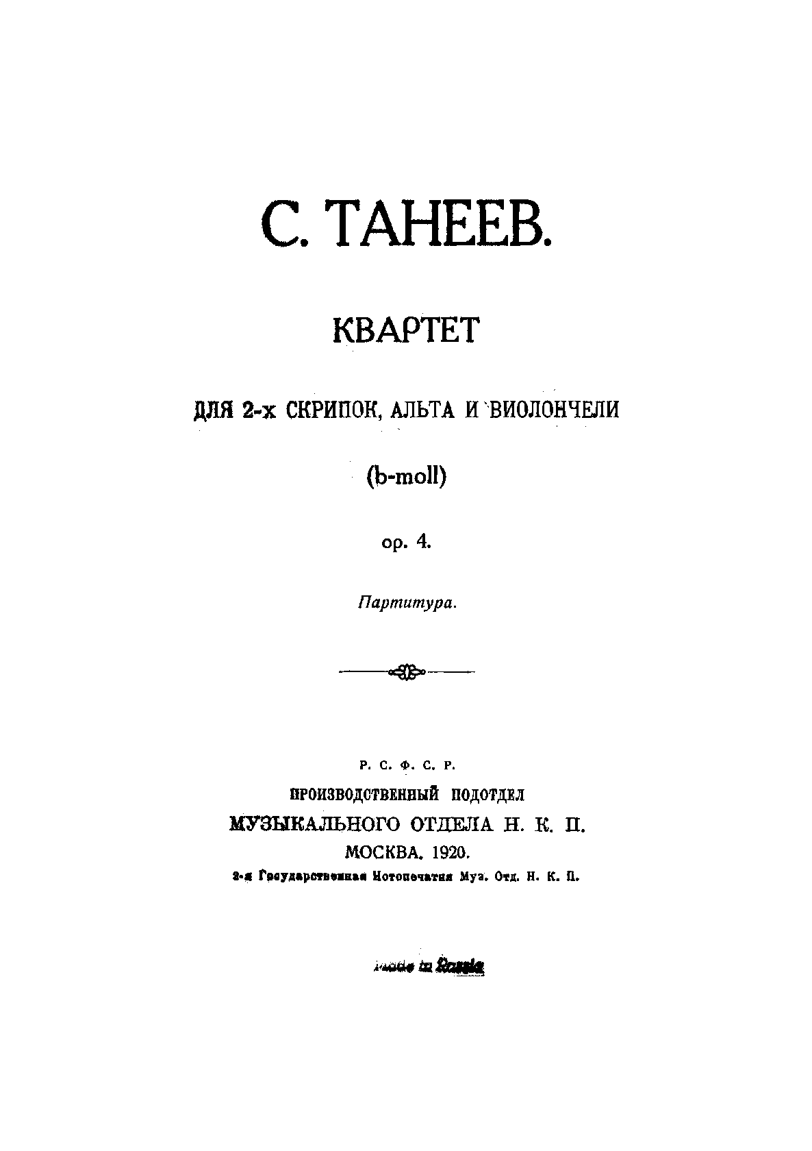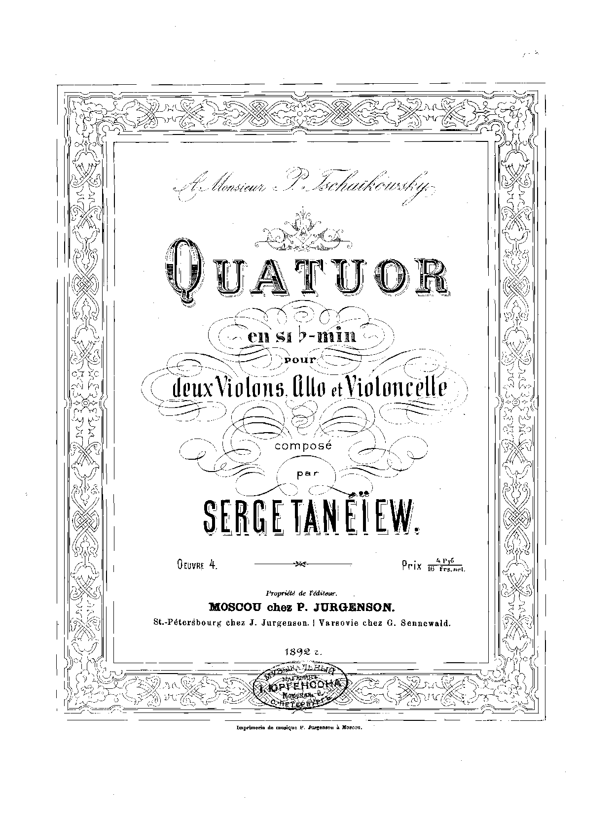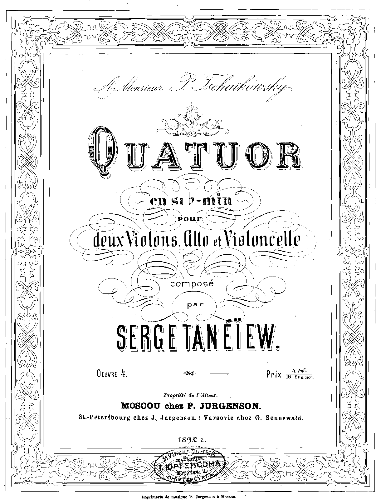 | First Publication. | 1892 – Moscow: P. Jurgenson