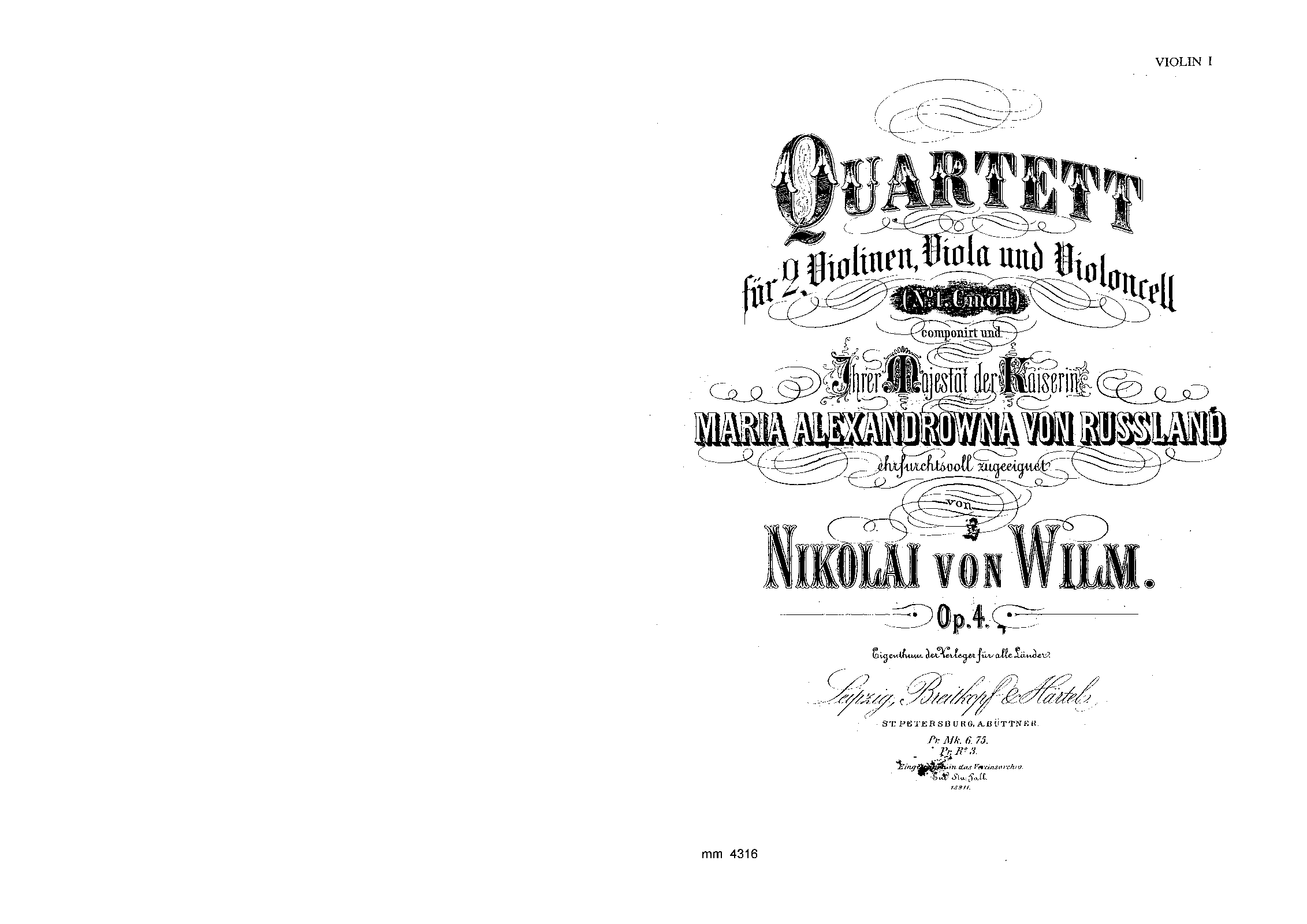Although the publisher on the title page listed the quartet as No.1, perhaps in anticipation that there might be another one at sometime in the future, there is no indication that he ever wrote or at least published another string quartet.