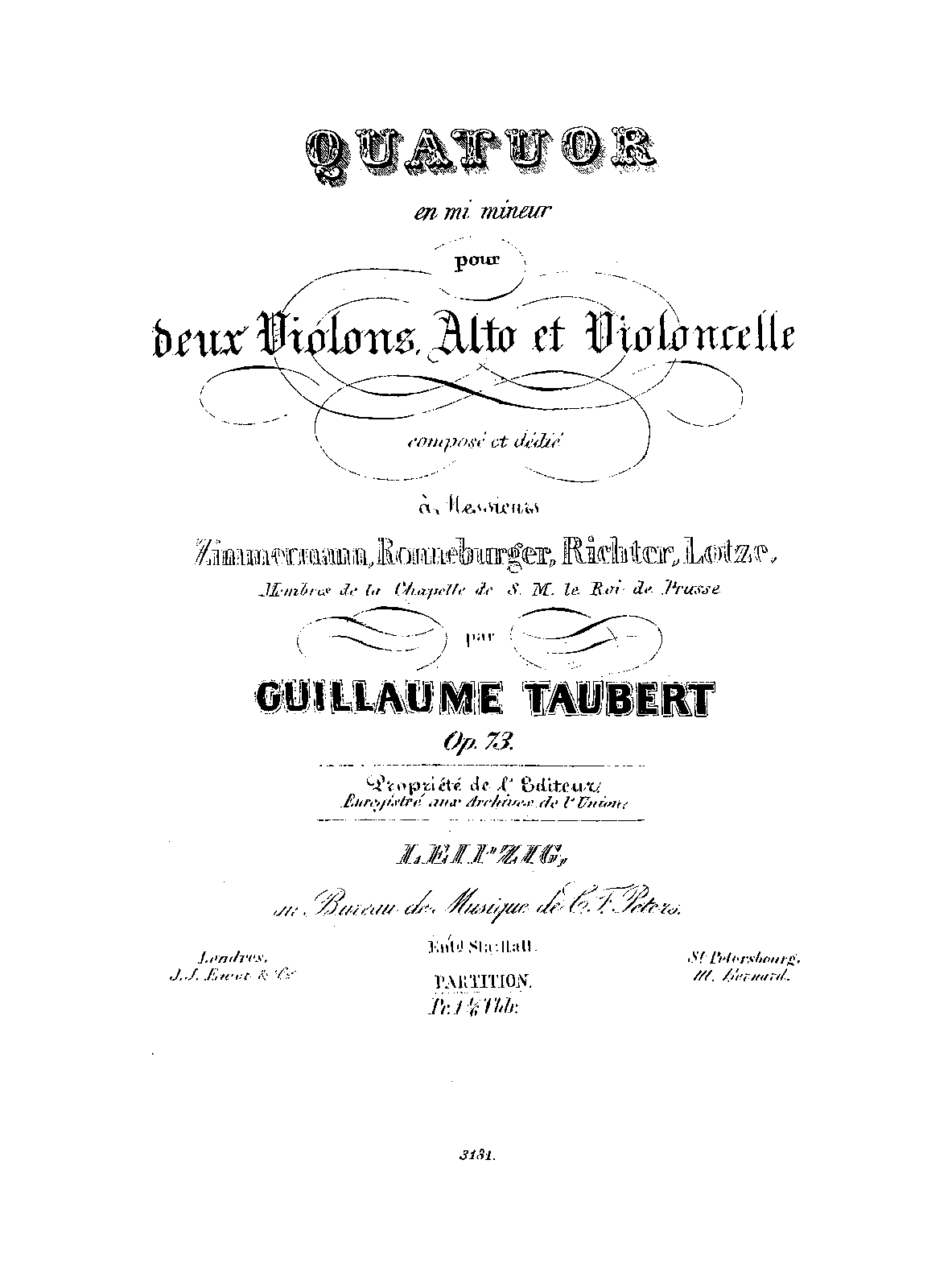 | Dedication | Messieurs Zimmermann, Ronneburger, Richter, Lotze, membres de la Chapelle de S. M. le Roi de Prusse |