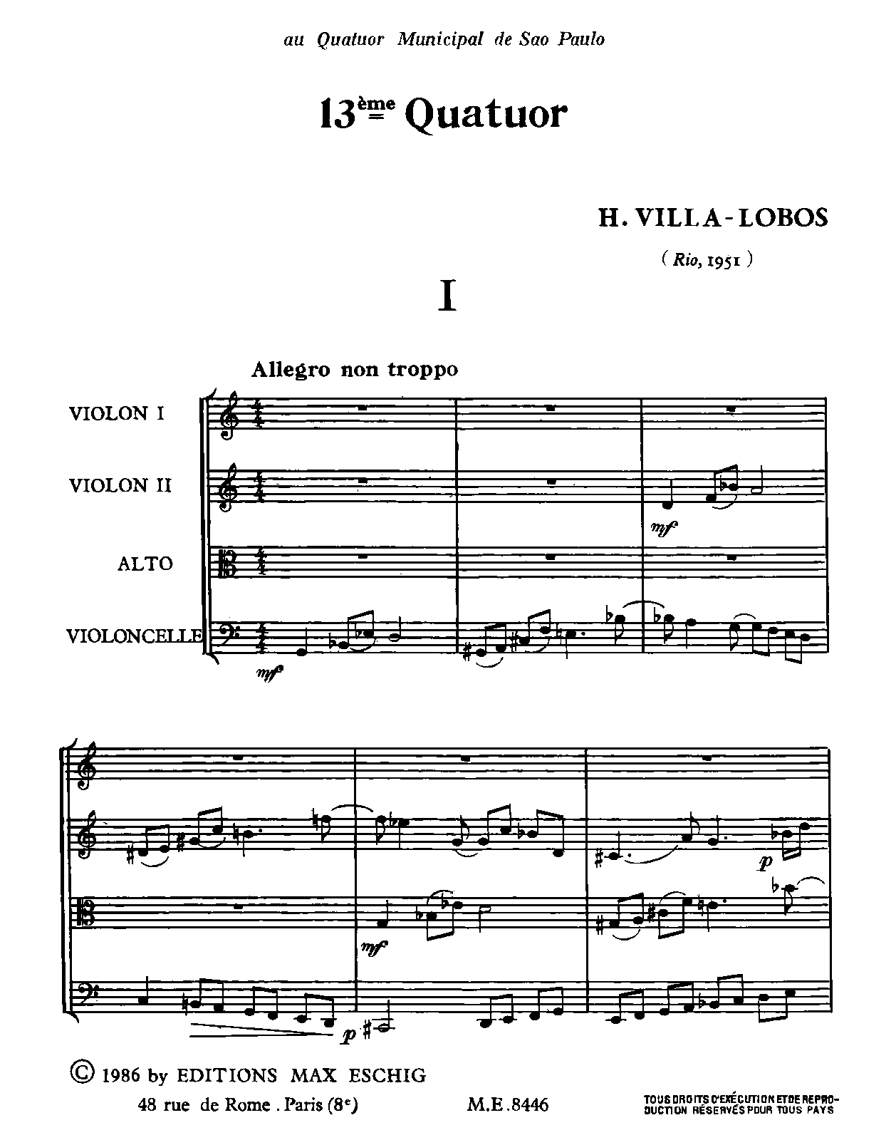 | Dedication | Quartet Municipal de Sao Paulo. |
