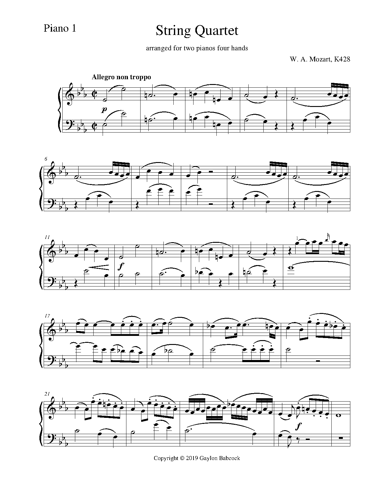 Publisher. Info. Streich-Quartette für Pianoforte zu 4 Händen, Bd.1
