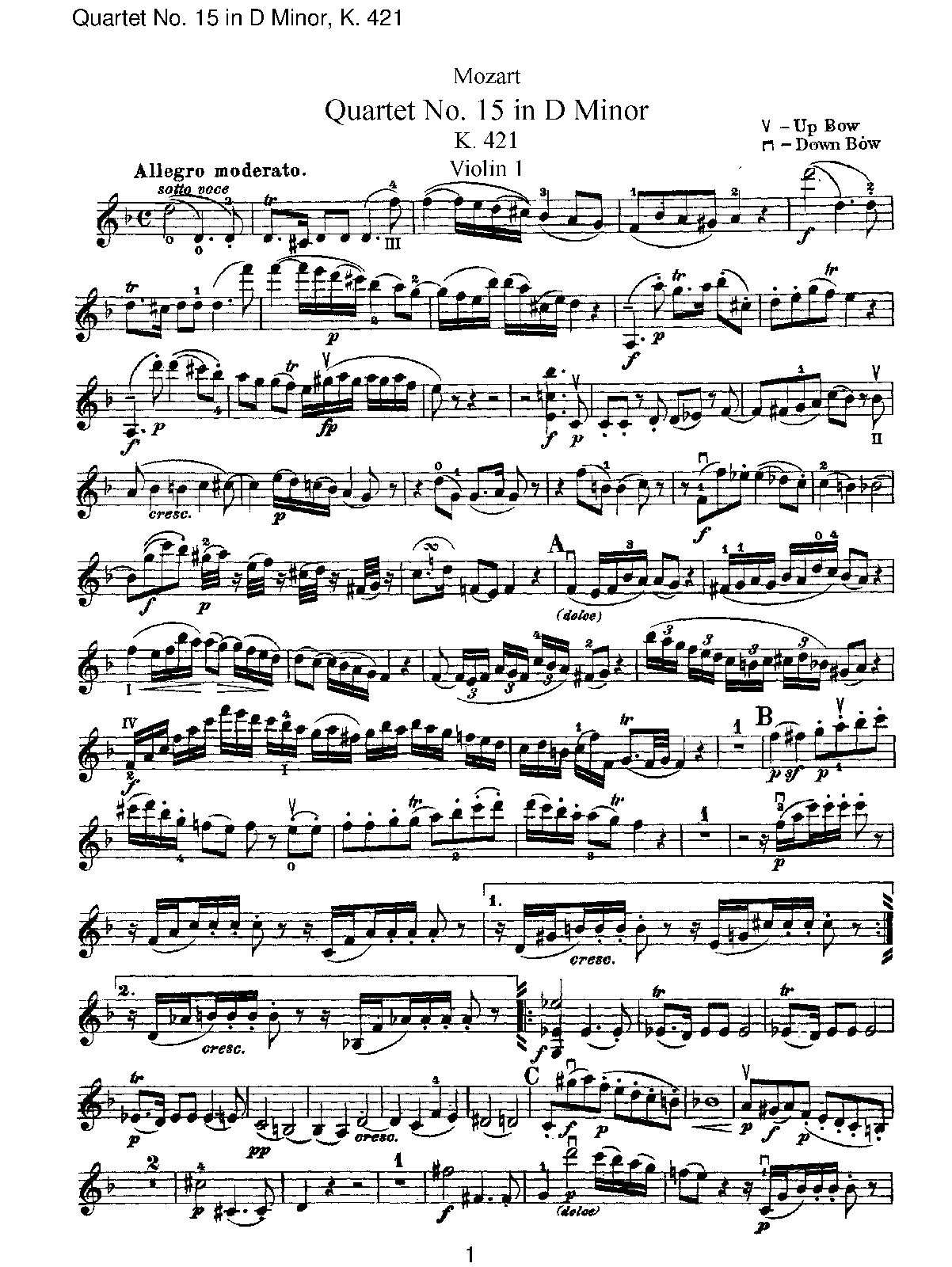 String Quartet No.15 in D minor, K.421/417b (Mozart, Wolfgang Amadeus)