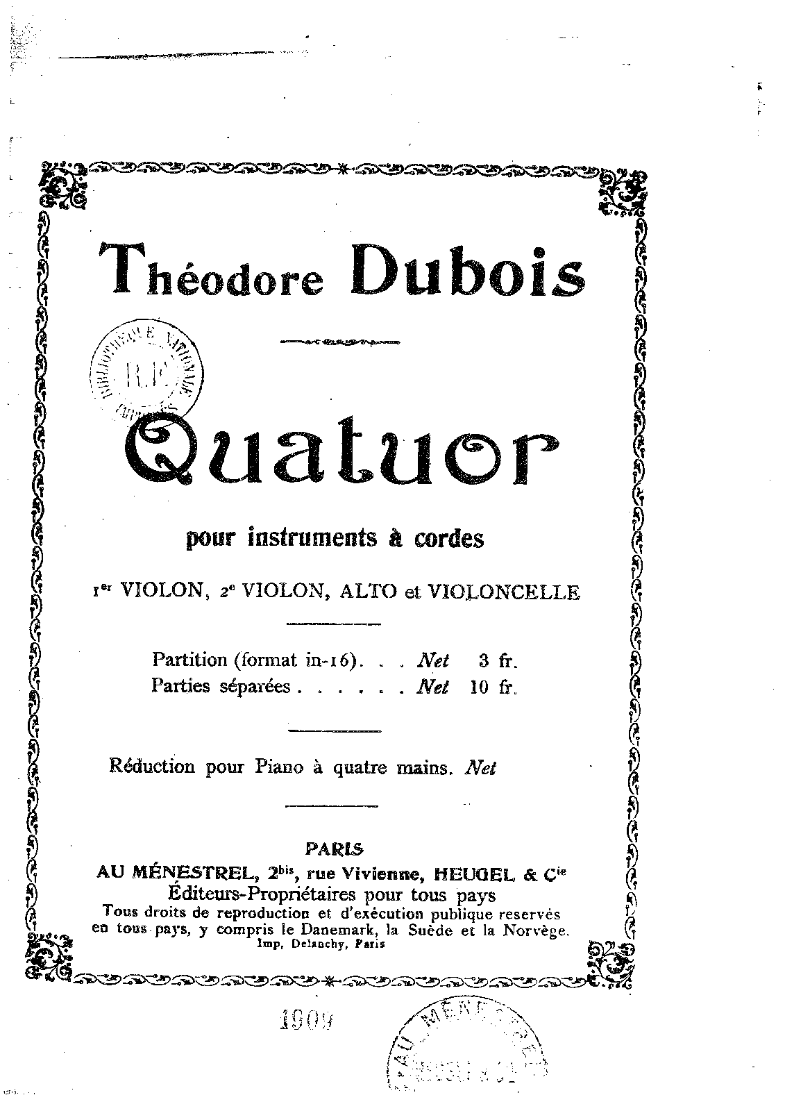 | First Performance. | 1909-05-11 in Paris, Quatuor Parent