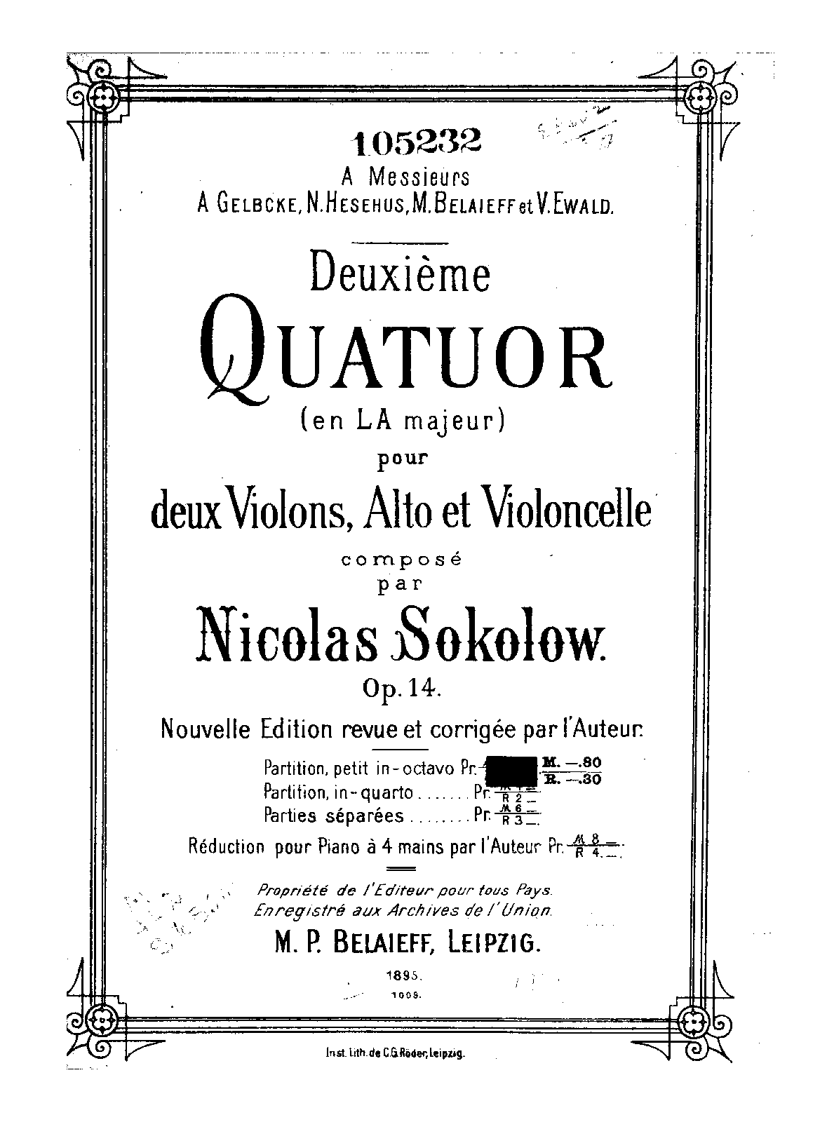 A. Gelbcke (Aleksandr Gelbcke) N. Hesehus (Nikolay Gezekhus, 1845–1918) M. Belaieff (Mitrofan Belyayev, 1836–1904) V. Ewald (Victor Ewald, 1860–1935)