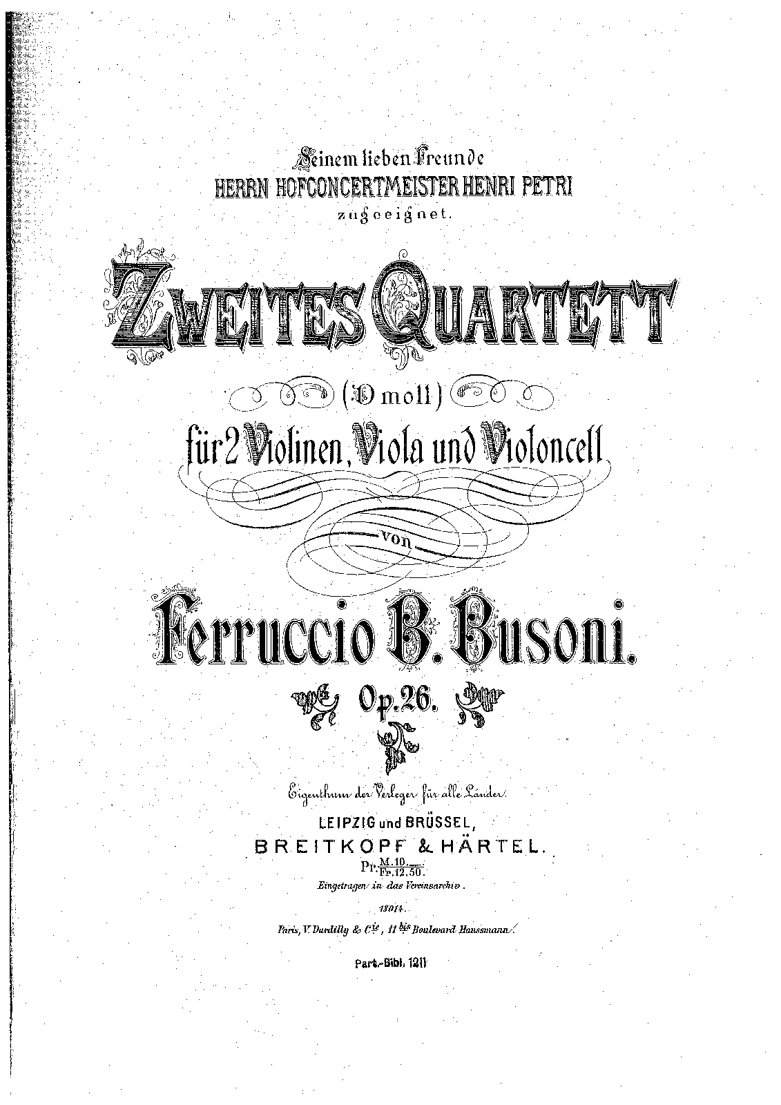 | Genre Categories | Quartets; For 2 violins, viola, cello; Scores featuring the violin; |