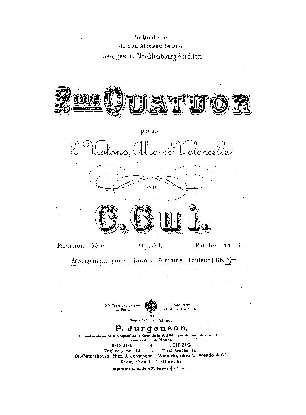"A Quatuor de son Altesse le Duc Georges de Mecklenbourg-Strélitz"