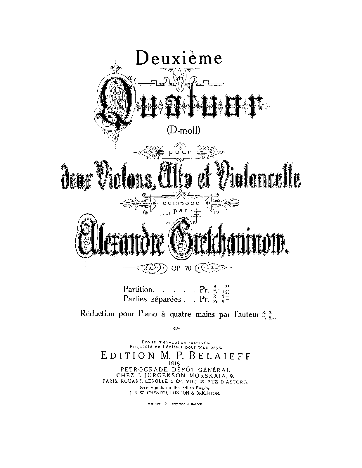 | Genre Categories | Quartets; For 2 violins, viola, cello; Scores featuring the violin; |