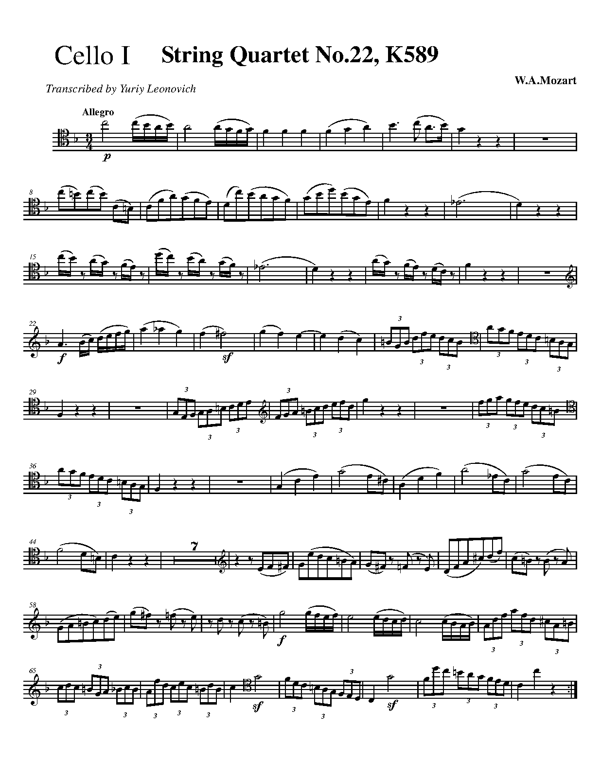 String Quartet No.22 in B-flat major, K.589 (Mozart, Wolfgang Amadeus)