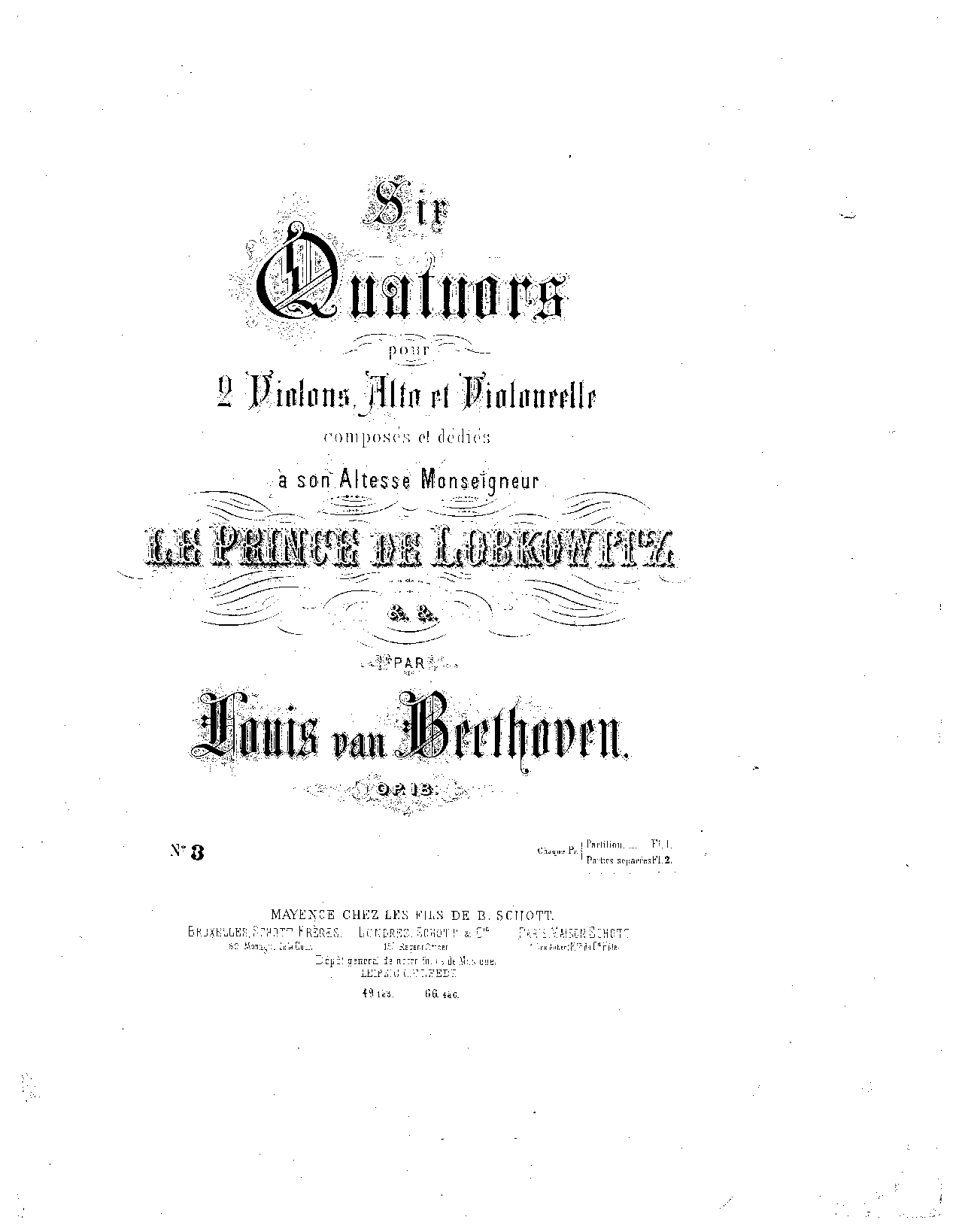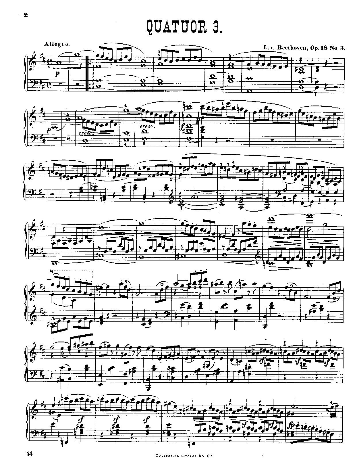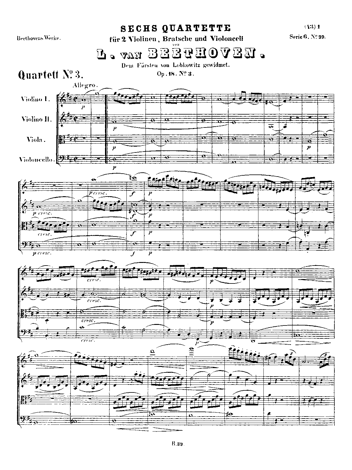 Misc. Notes Quartet extracted from Simrock's complete publication of 6 String Quartets, Op.18. From Royal College of Music Library, London (GB-Lcm): E257/2