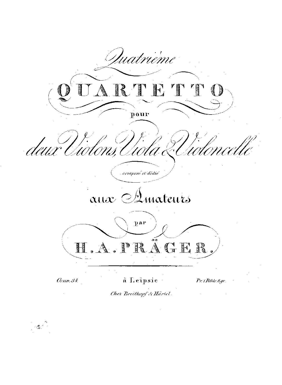 actually, it seems the supposition that this is string quartet no.4 is based on the assignment of nos.1 to 3 to quartets op.13, and the absence to our knowledge of a quartet between those quartets and opus 34. A quartet opus 20 by a "Präger" is mentioned in Handbuch der musikalischen Literatur; oder, Allgemeines systematisch-geordnetes Verzeichnis der in Deutschland und in den angrenzenden Ländern gedruckten Musikalien auch musikalischen Schriften und Abbildungen, mit Anzeige der Verleger und Preise volumes 1 and 2 (a collected edition published in 1845)- what year the opus 20 was published needs to be determined, as does which Präger composed it, but this could well make opus 34 quartet no. 5 at least.- Schissel (edit: the quartet opus 20 is revealed by Worldcat to be a quartet for flute and strings published by Breitkopf und Härtel, plate 2082 (so possibly published ca.1816) - mystery solved.)