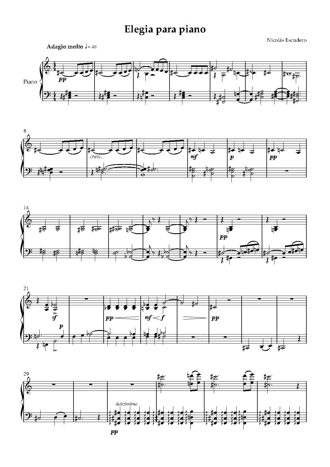 The 4th movement, 'Elegia' will be arranged for solo piano. |