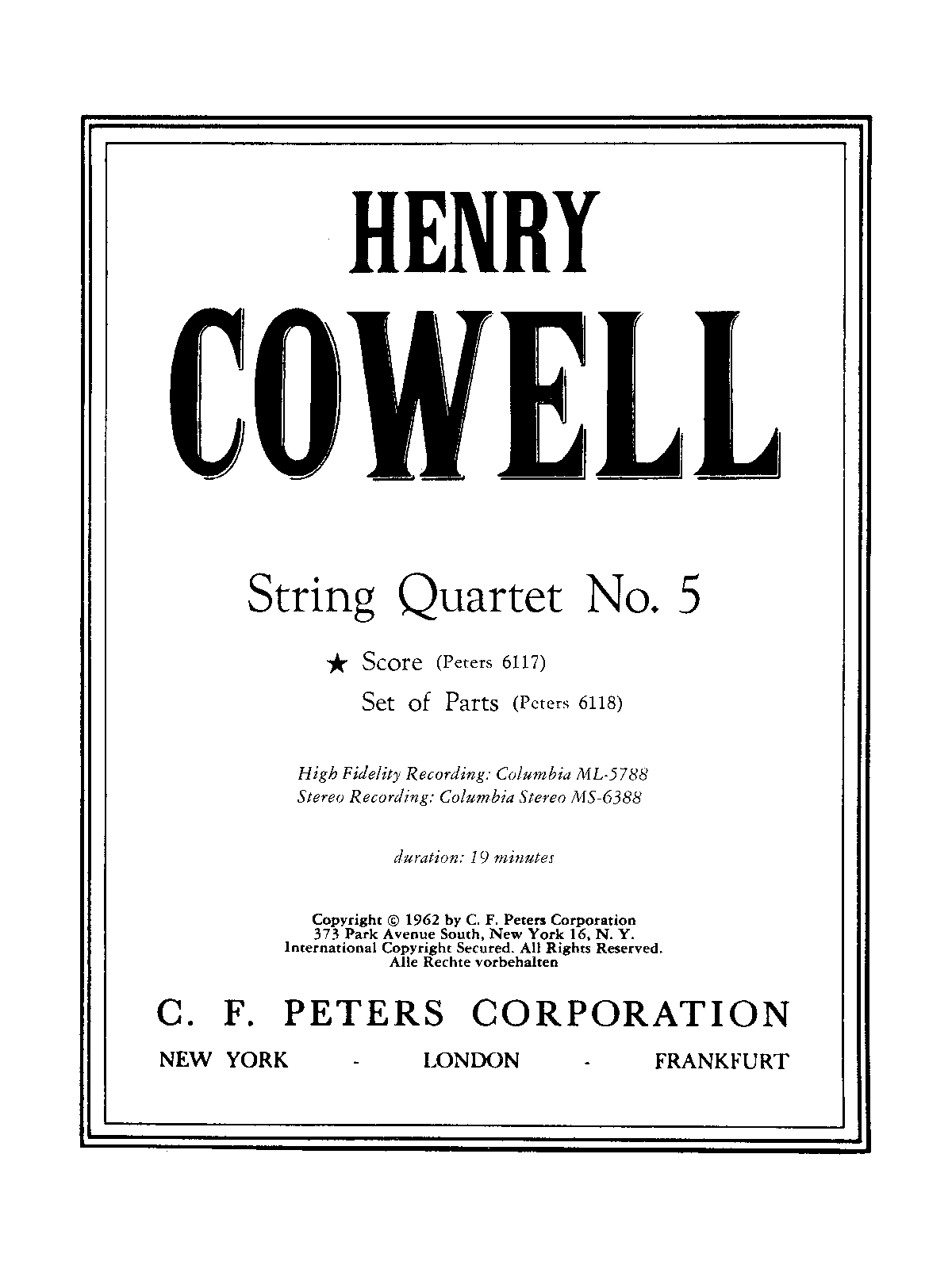 | Extra Information | Commissioned by the Elizabeth Sprague Coolidge Foundation in the Library of Congress for the foundation's Twelfth Festival of Chamber Music, 19-21 Oct. 1956 |