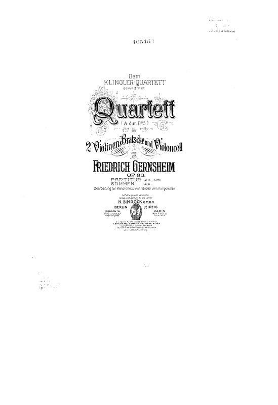 | Genre Categories | Quartets; For 2 violins, viola, cello; Scores featuring the violin; |