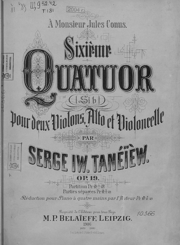 | Extra Information | For this quartet there have been at least three commercial recordings- by the Beethoven Quartet (34 minutes) (released 1953? 1962?) and Taneev Quartet on LP (recorded 1977? - on CD a few times; ca.37 minutes), and the Carpe Diem Quartet on CD. |