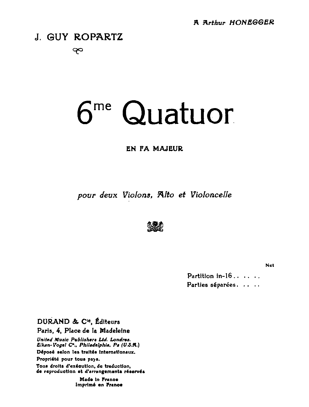 | Genre Categories | Quartets; For 2 violins, viola, cello; Scores featuring the violin; |