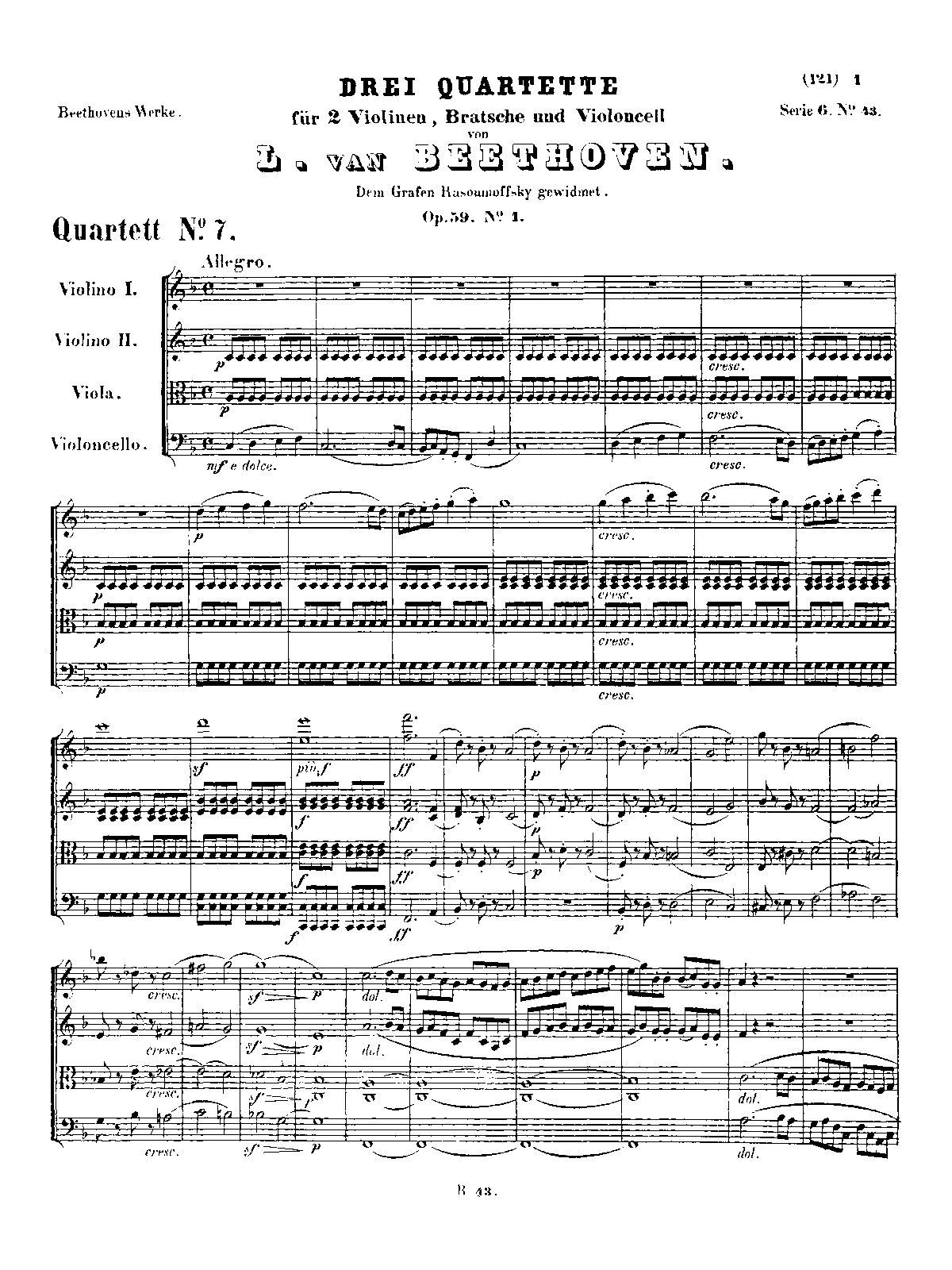 | Name Aliases | String Quartet No. 7 in F Major, Op. 59, No. 1, "Razumovsky"; Strijkkwartet nr. 7 (Beethoven); Streichquartett Nr. 7 F-Dur op. 59,1; Cuarteto de cuerda n.º 7 en fa mayor Op. 59 n.º 1; Godalni kvartet v F-duru; |
