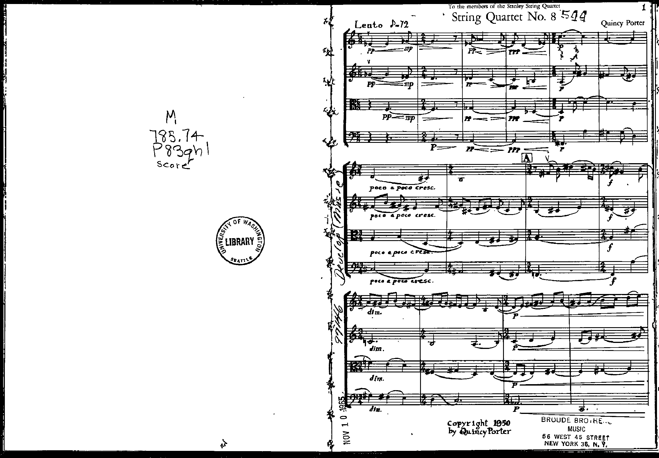 | First Performance. | 1950 July 25, Stanley String Quartet, Ann Arbor |