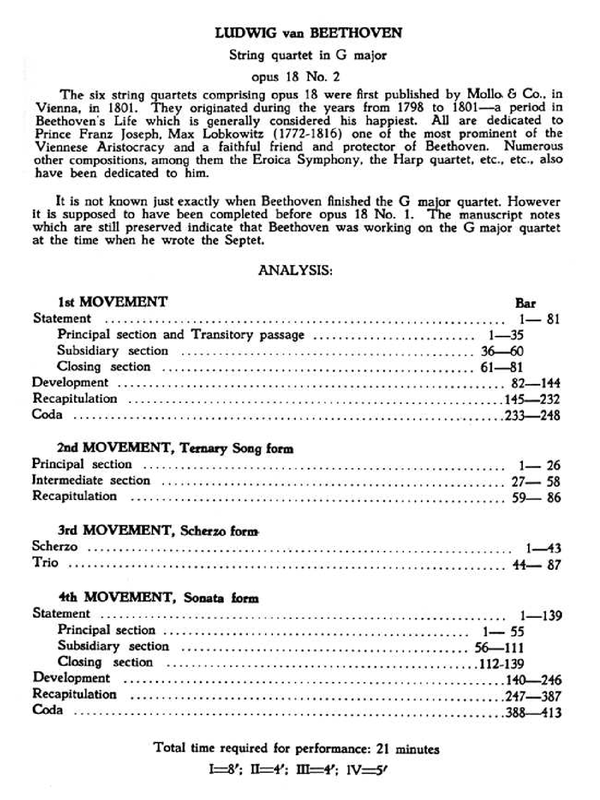 Misc. Notes Quartet extracted from Simrock's complete publication of 6 String Quartets, Op.18. From Royal College of Music Library, London (GB-Lcm): E257/2