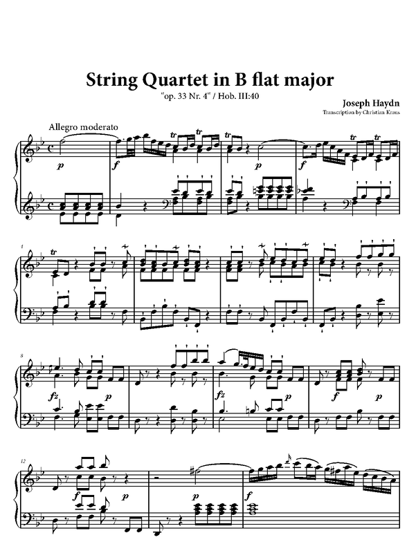 | Name Aliases | Streichquartett Nr. 34; Streichquartett op. 33 Nr. 4; String Quartet, Op. 33, No. 4; FHE No. 73; Hob. III:40; String Quartet No. 34 |