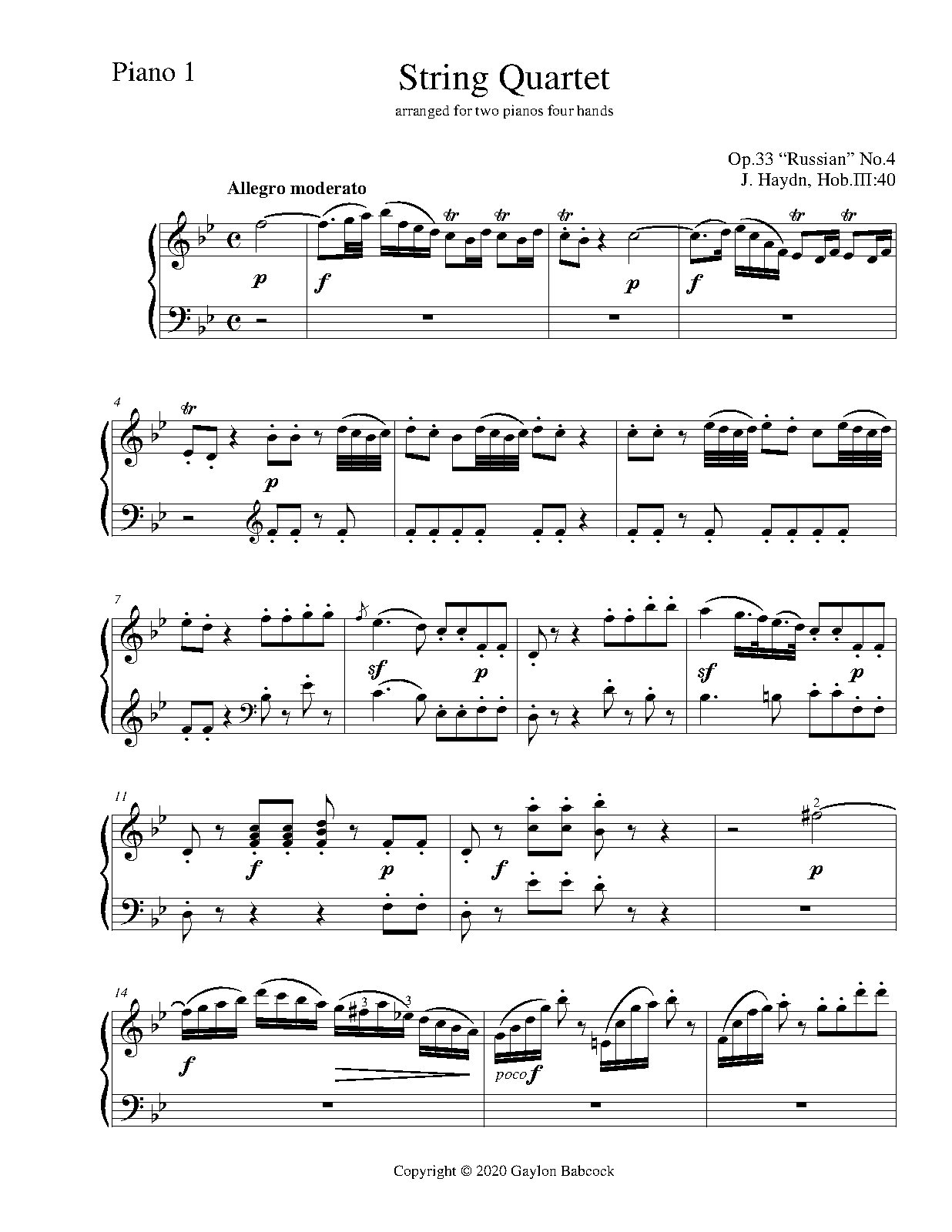 | Work Title | String Quartet in B-flat major |