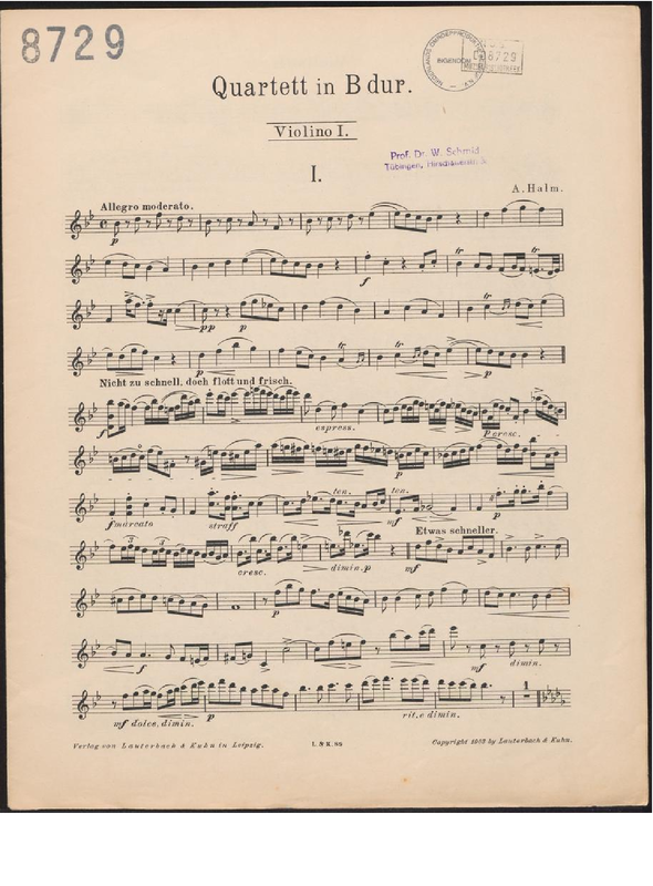 Actually, as Caprotti points out and also see here, this may be the posthumously published opus 28 quartet of _Anton_ Halm (notice that the score and parts do not say...!) - a composer who lived from 1789 to 1872 and who we have as an editor (LinkEd) though not with his own page. August Halm did, I think, compose some quartets and other chamber music of his own according to HMB (unless those also were by Anton Halm and they too were inserting "August" for "A." - it happens- though I think HMB has usually at most times been pretty good about just reporting what the score says- I think... and not editorially inserting names that might be mistaken guesses)...