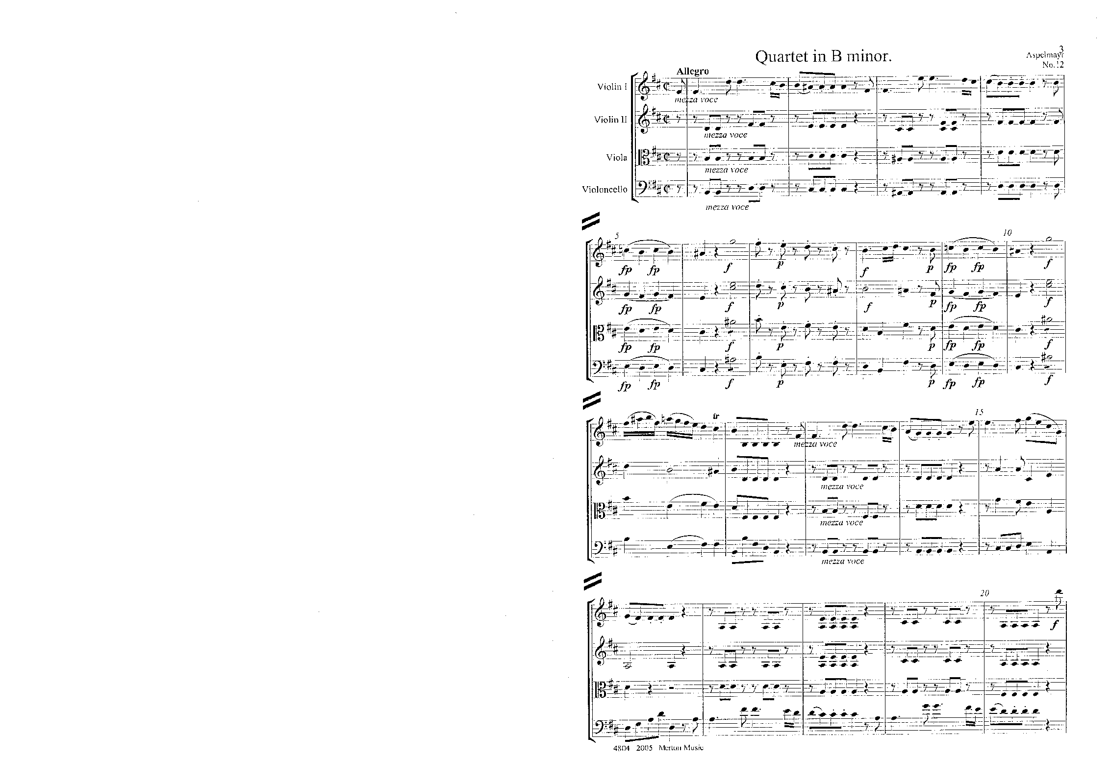 | Genre Categories | Quartets; For 2 violins, viola, cello; Scores featuring the violin; |