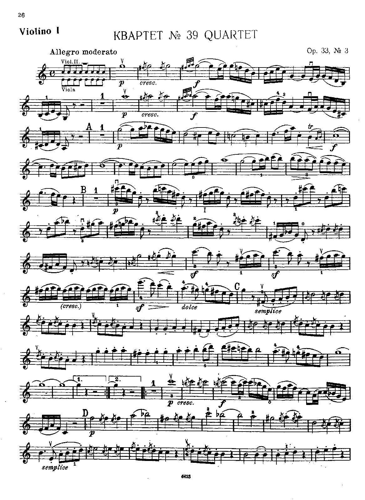 | Name Aliases | Streichquartett Nr. 32; Streichquartett op. 33 Nr. 3; Vogelquartett; String Quartet, Op. 33, No. 3; FHE No. 72; |