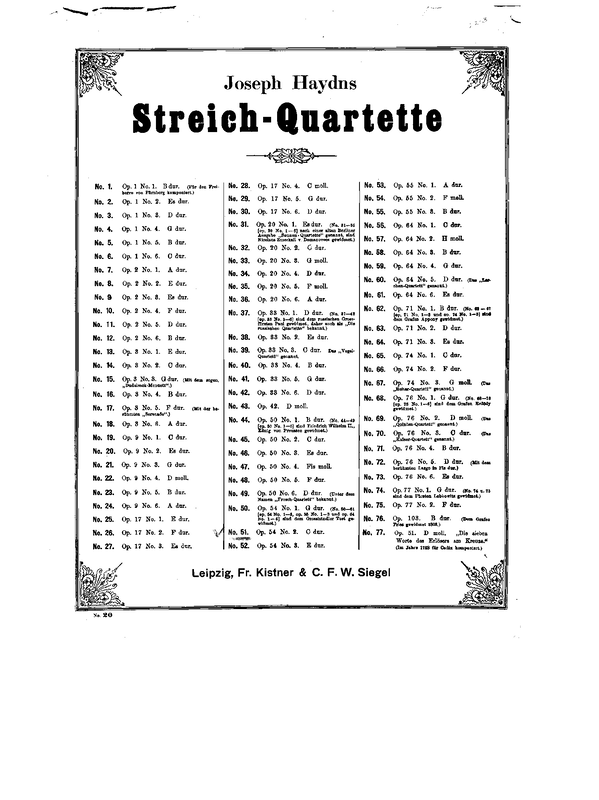 | String Quartets by Joseph Haydn (Hob. III) | ||||||||||||||||||||||||||||||||