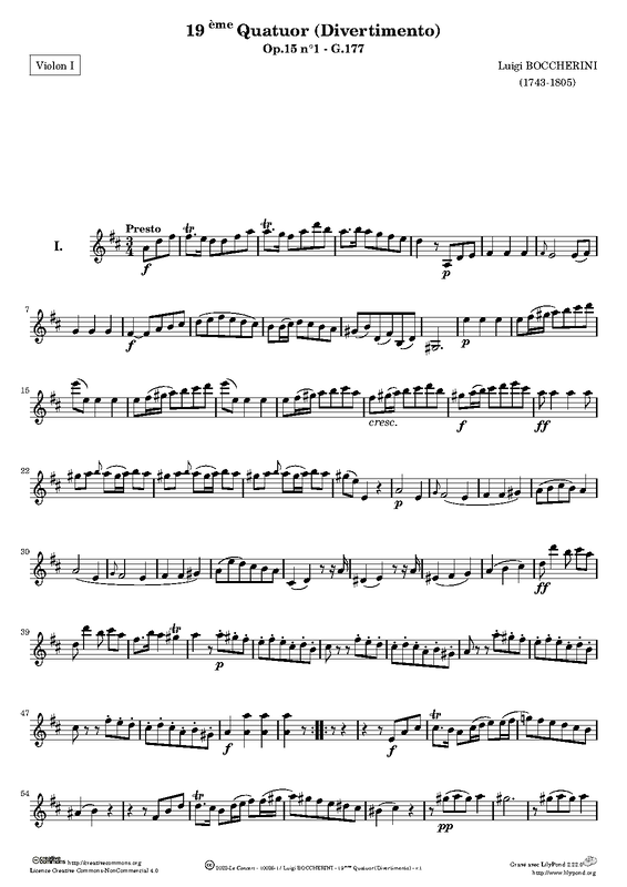| Year/Date of CompositionY/D of Comp. | 1772 as part of the 6 String Quartets, G.177-182 (No.1) |