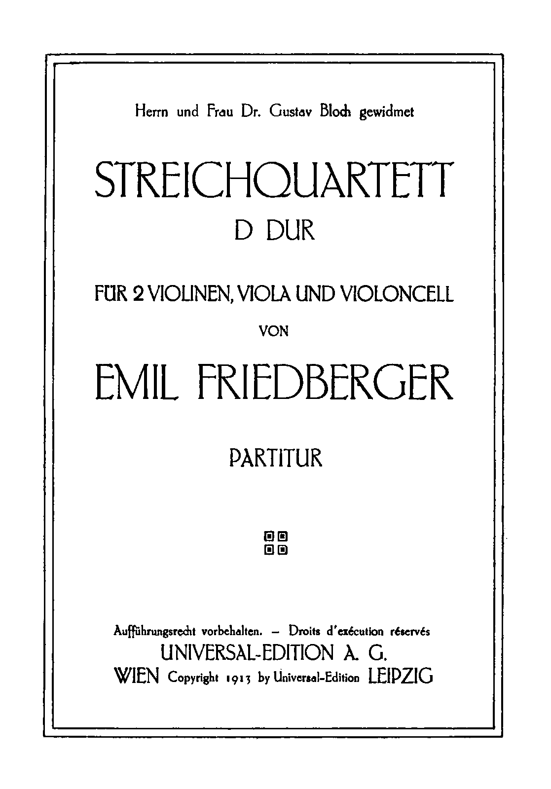 | Dedication | Herrn und Frau Dr Gustav Bloch |