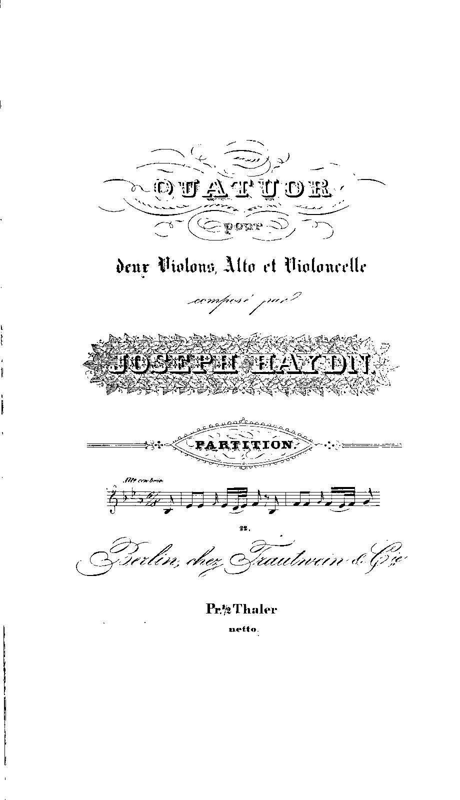 | Genre Categories | Quartets; For 2 violins, viola, cello; Scores featuring the violin; |