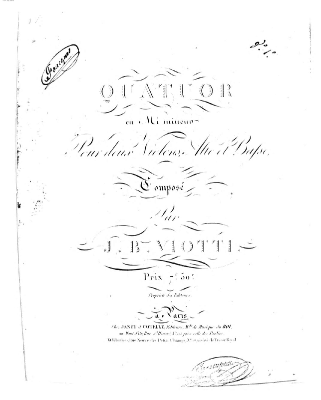 | Alternative. Title | Quatuor en Mi mineur pour deux violons, alto et basse |