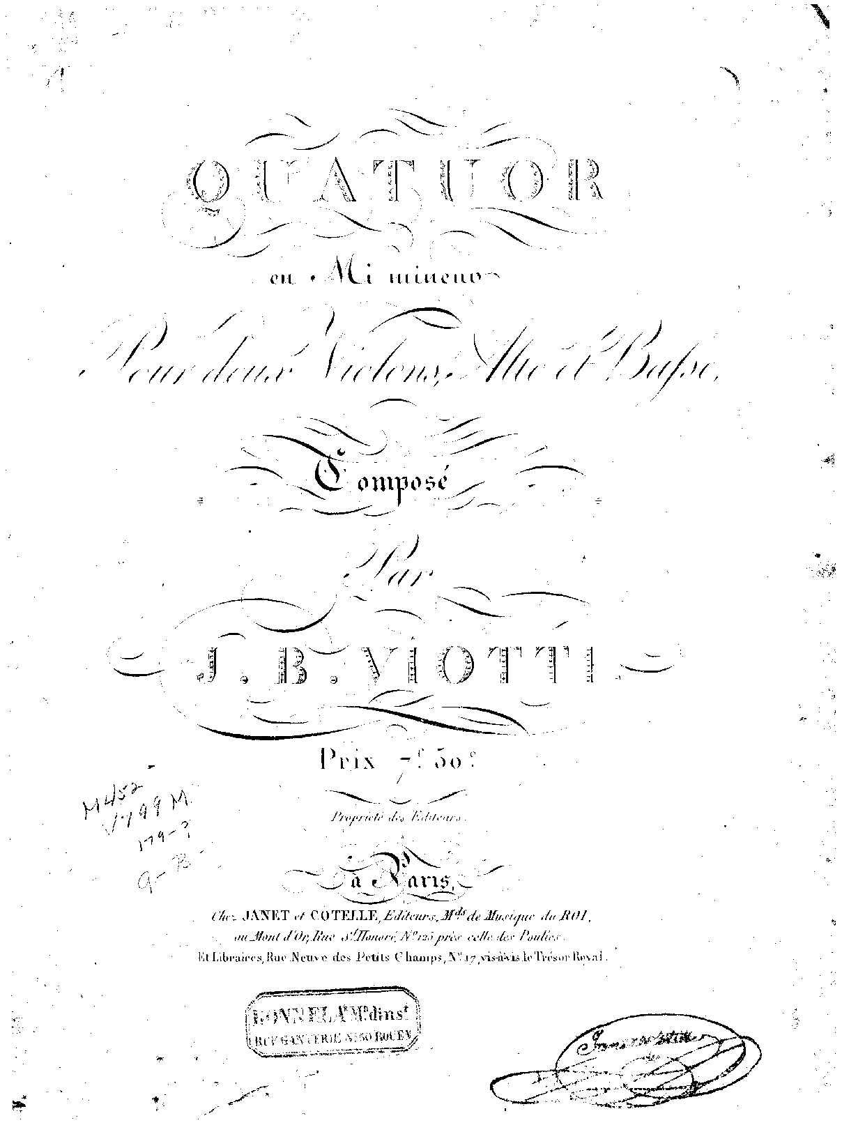 | Genre Categories | Quartets; For 2 violins, viola, cello; Scores featuring the violin; |