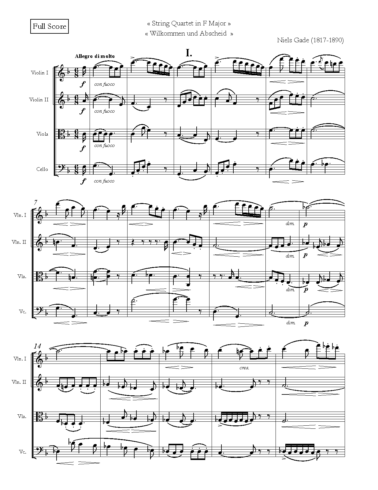 | Work Title | String Quartet in F major |