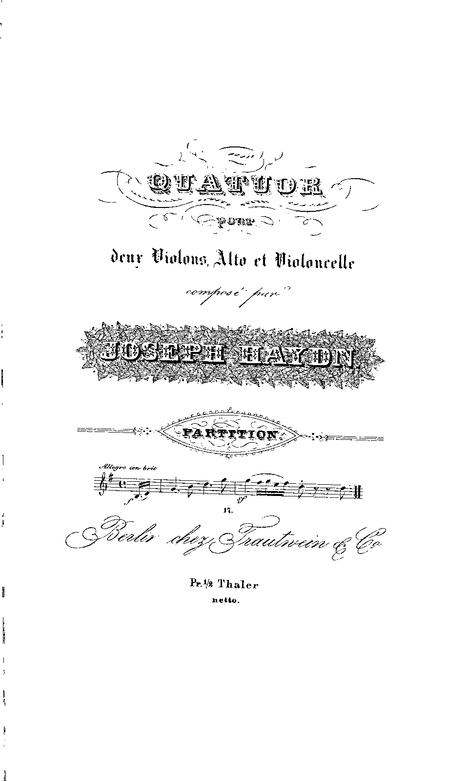 | Genre Categories | Quartets; For 2 violins, viola, cello; Scores featuring the violin; |