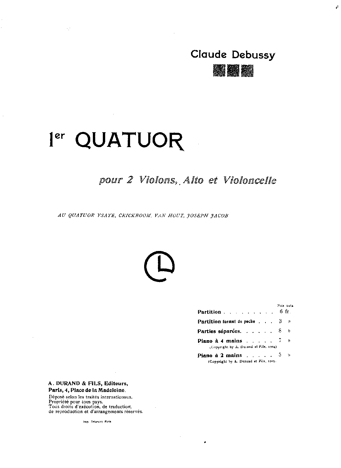 Publisher. Info. Paris: A. Durand & Fils, 1904. Plate D. & F. 6421.