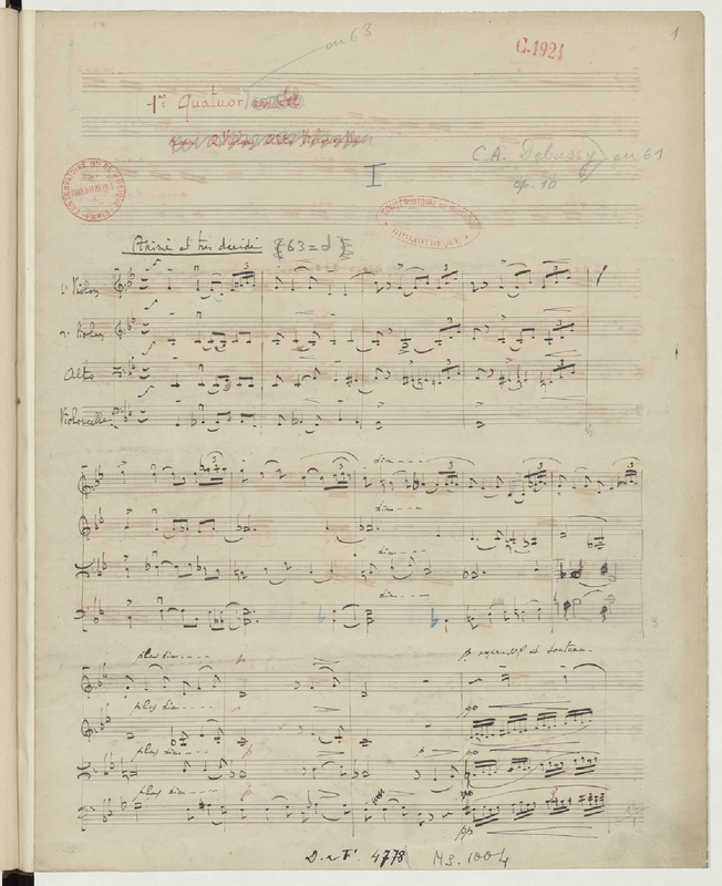 Misc. Notes BNF notes: Manuscrit autographe à l'encre noire ayant servi à la gravure. - Titre propre, mention d'opus et mention d'auteur à l'encre rouge et au crayon pris au départ, de deux mains différentes. - Indications métronomiques d'une autre main au début de chaque mouvement. - Ms. non signé et non daté.
