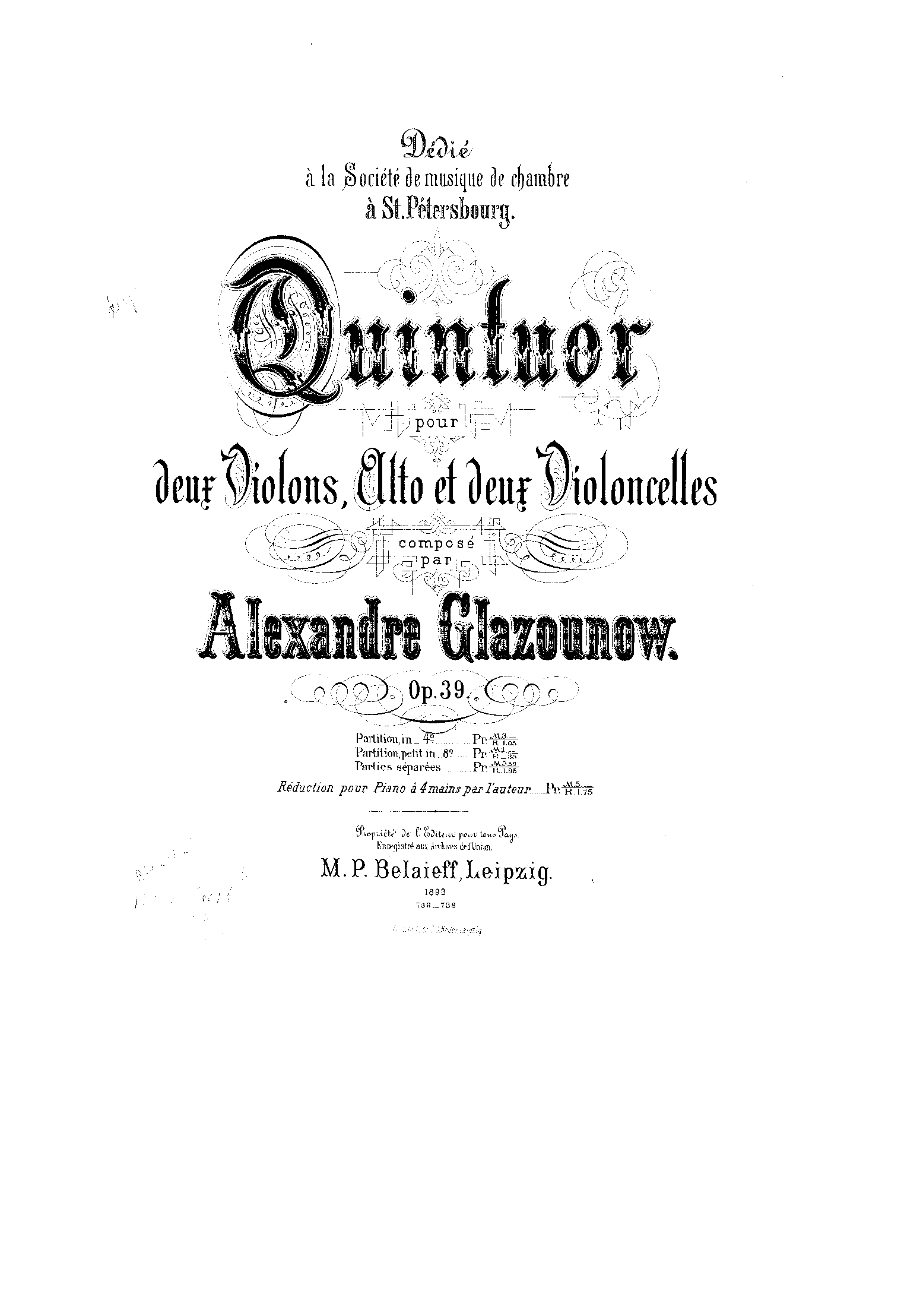 Publisher. Info. Leipzig: M.P. Belaieff, 1893. Plate 738.