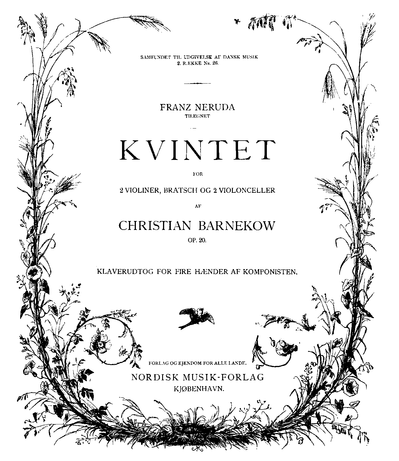 Samfundet til Udgivelse af Dansk Musik, 2. række, Nr. 26 Copenhagen: Nordisk Musik-Forlag, n.d.(ca.1914). Plate N.M.-F. 4498.