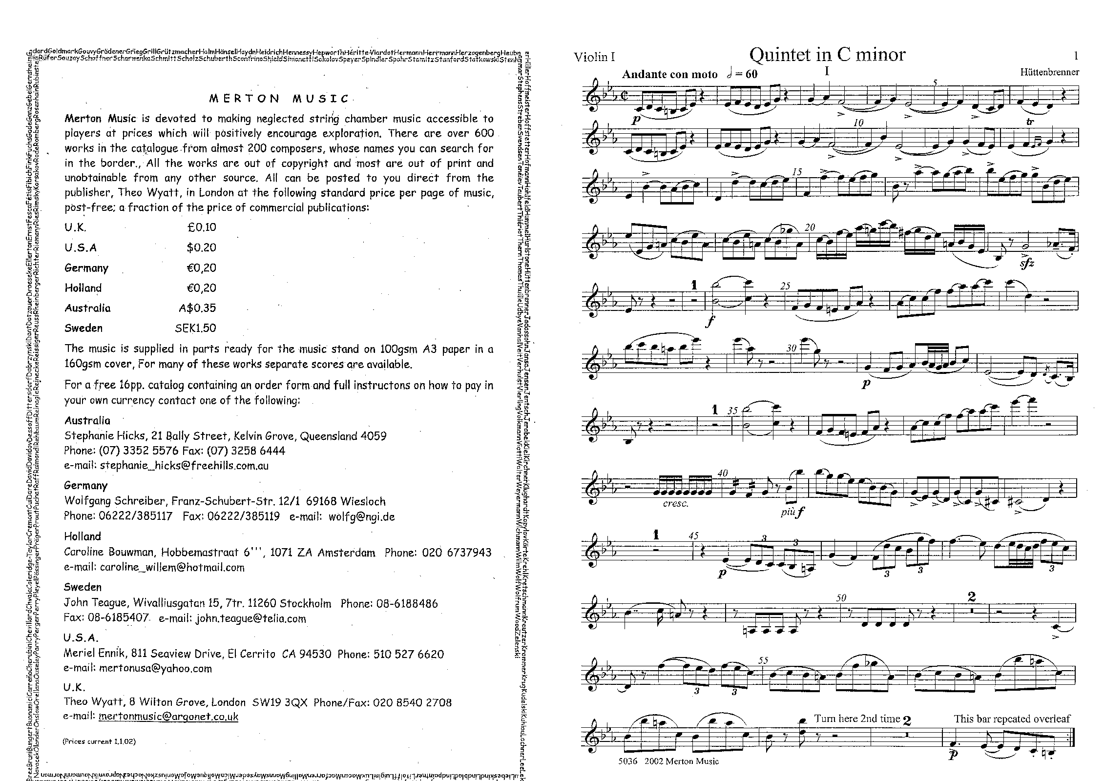 | Genre Categories | Quintets; For 2 violins, 2 violas, cello; Scores featuring the violin; |