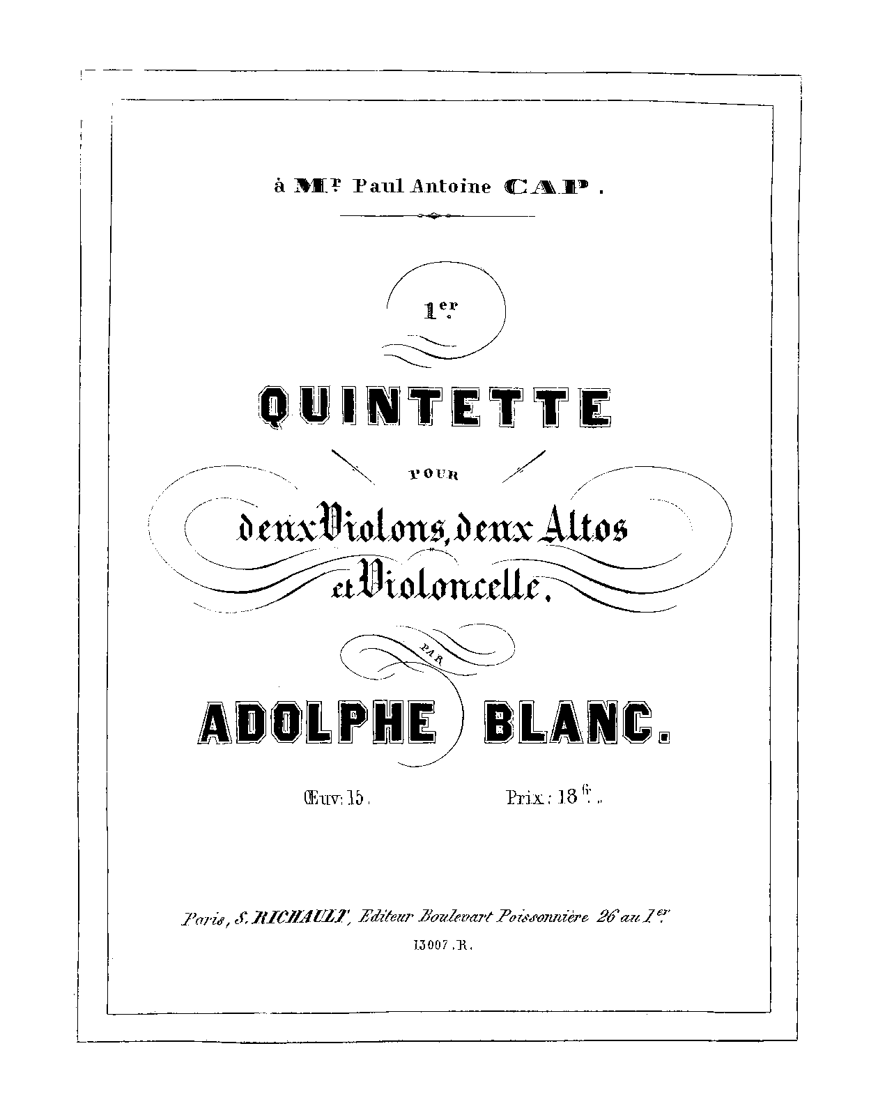 | Alternative. Title | 1er. quintette pour deux violons, deux altos et violoncelle oeuv: 15 |